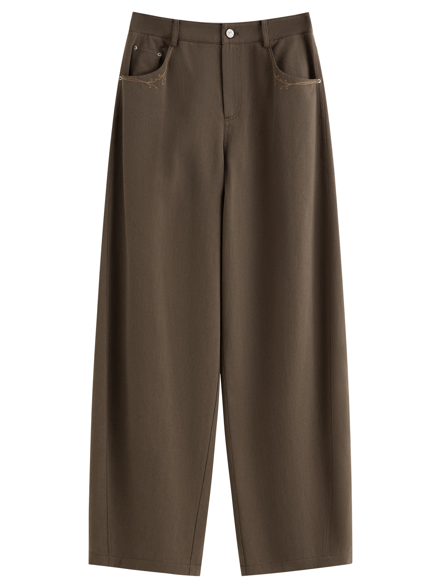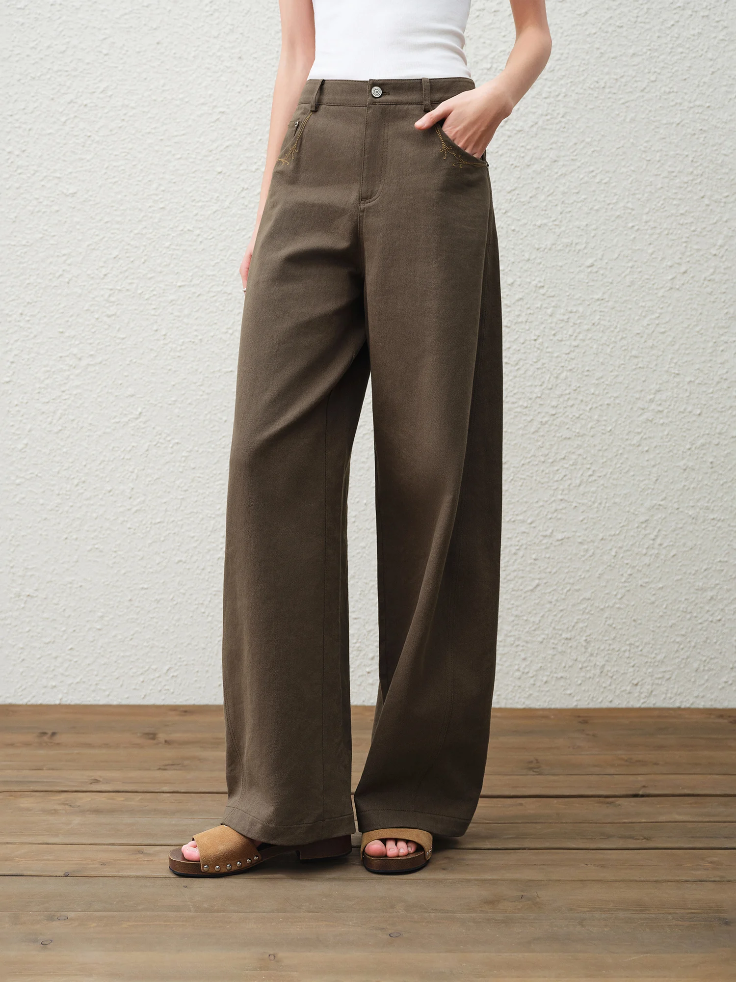 Designed for women seeking a relaxed yet refined silhouette, these Embroidered Retro Wide Leg Jeans in a warm brown hue combine casual comfort with subtle vintage charm. Crafted from a breathable cotton, lyocell, and linen blend, they offer a loose fit with a high waist for ease of movement and all-day wearability.