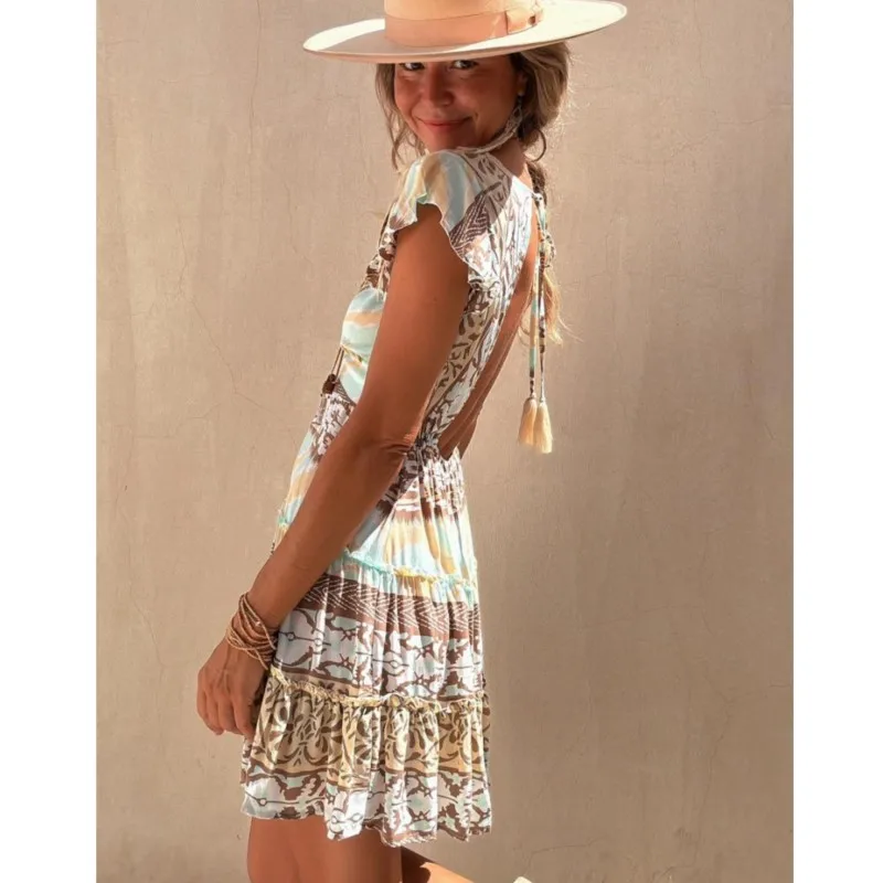 9 reviews for Printed A-Line Summer Dress with V-Neck and Flutter Sleeves