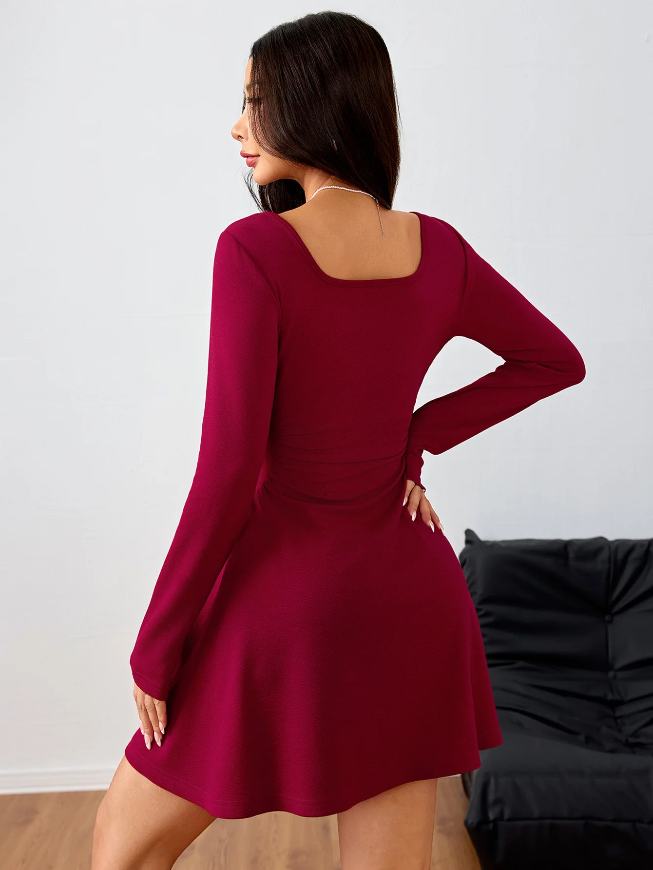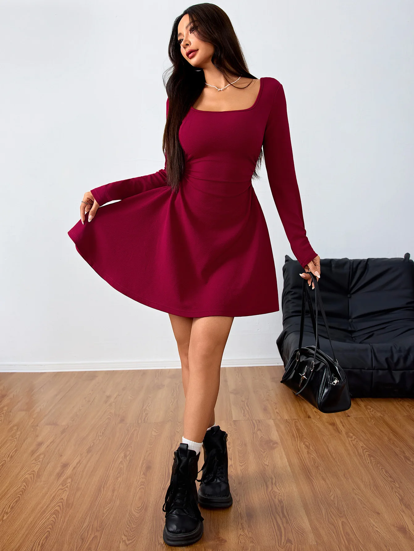 This mini dress effortlessly flatters your natural shape, making you feel confident and beautiful. Pair it with heels for a night out or dress it down with sneakers for a casual day. Its simple yet elegant design allows for versatility, making it an essential piece for your autumn wardrobe.