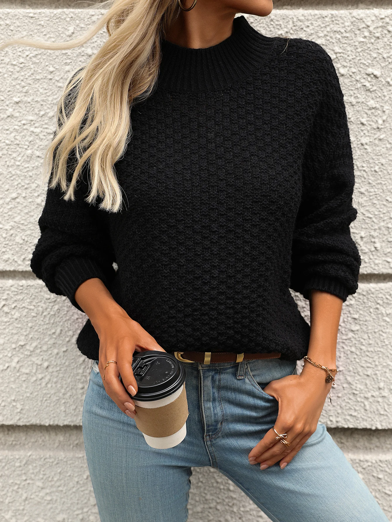 - Long sleeves and O-neck collar for a classic touch
