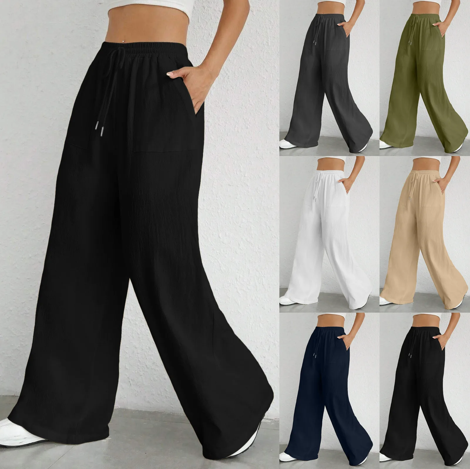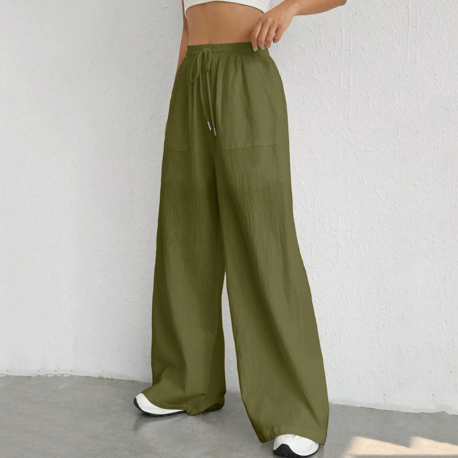 High-Waisted Women’s Wide Leg Pants with Pockets & Drawstring
