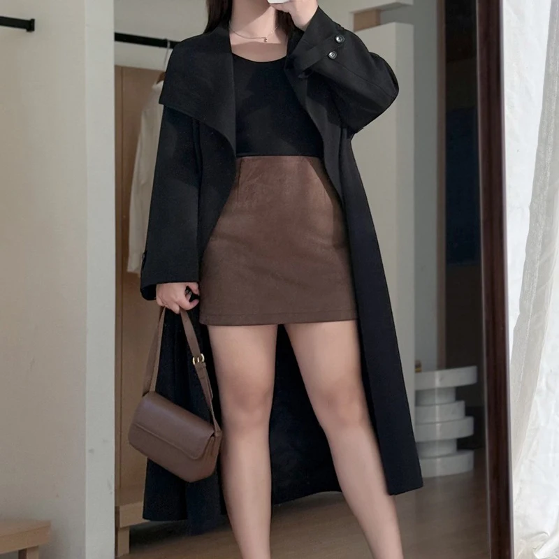 Step into autumn with this luxurious mini skirt, crafted from premium faux suede for a soft, sophisticated feel. The high waist and slightly A-line silhouette flatter every curve, making it a versatile addition to your wardrobe. Perfect for casual outings or chic events, this skirt pairs effortlessly with your favorite tops. Available in rich coffee, embrace style and comfort this season.