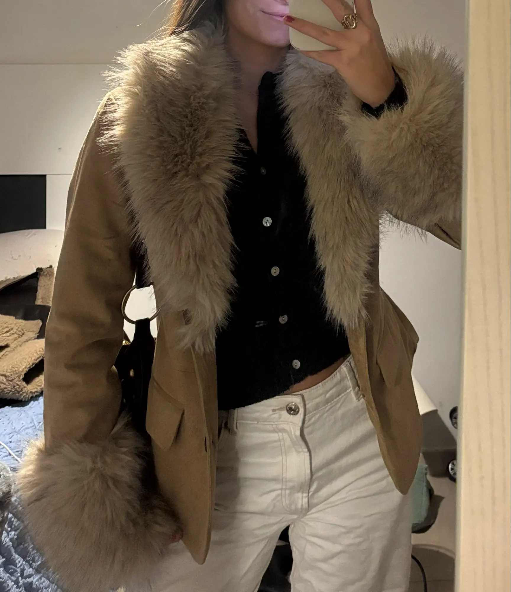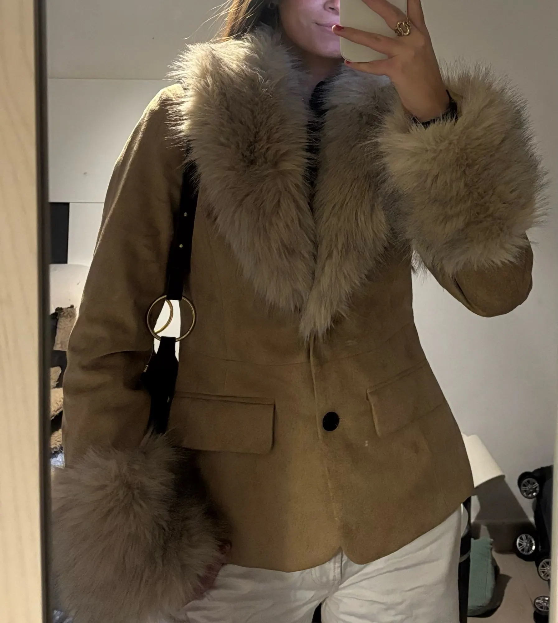 12 reviews for Faux Fur Suede Blazer with Turn-Down Collar — Khaki