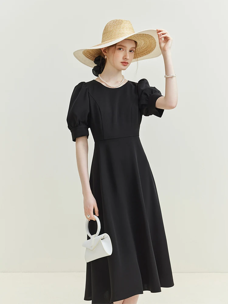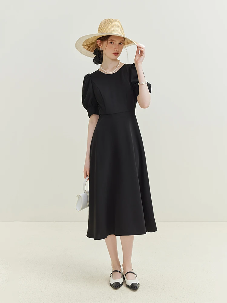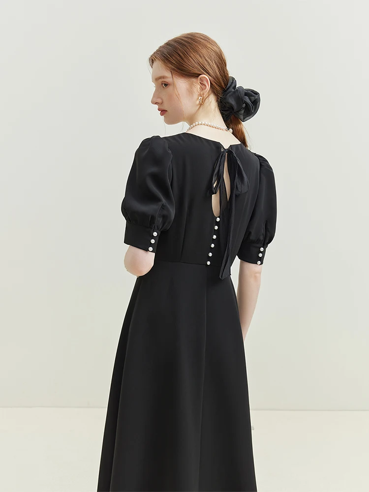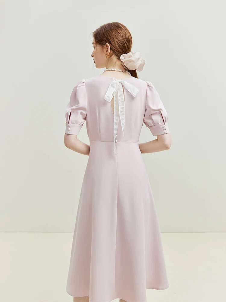 French Elegant Temperament Dress with Back Bow Detail