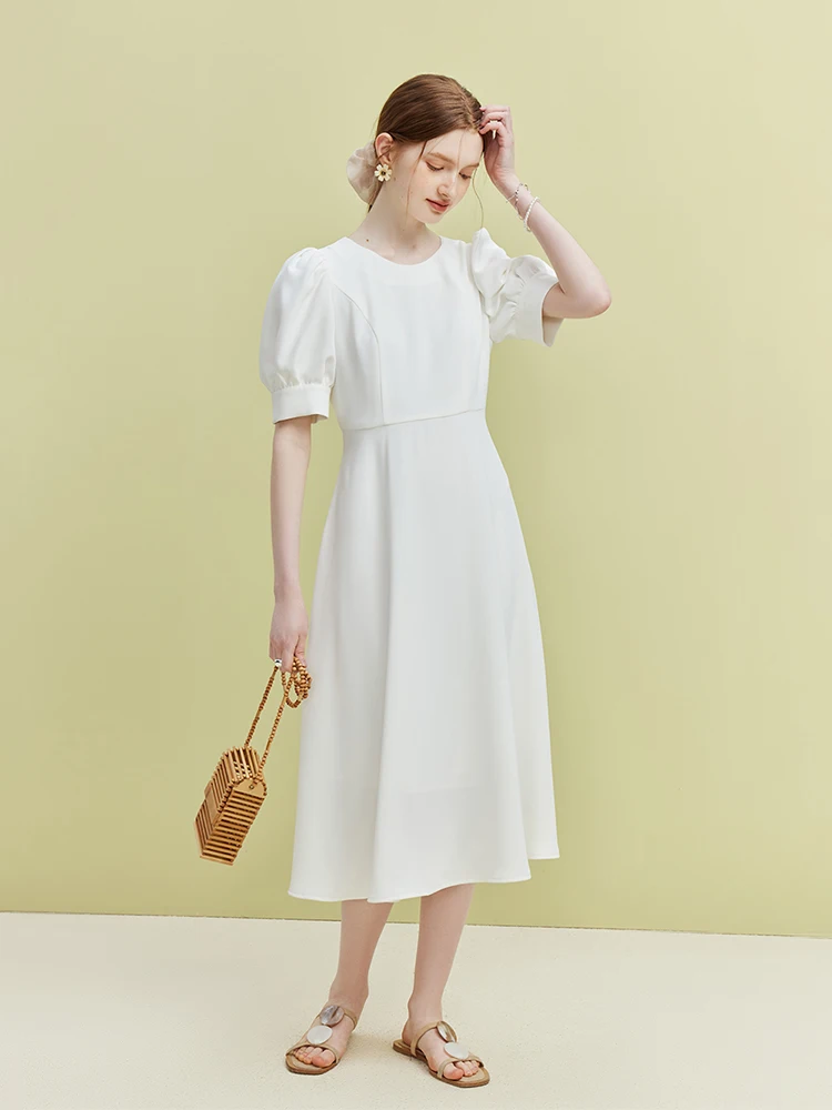 Introducing the French Elegant Temperament Dress, a versatile addition to your summer wardrobe. Designed for women seeking a blend of comfort and sophistication, this A-line dress features a classic O-neck and a mid-calf length, perfect for casual outings or garden parties.