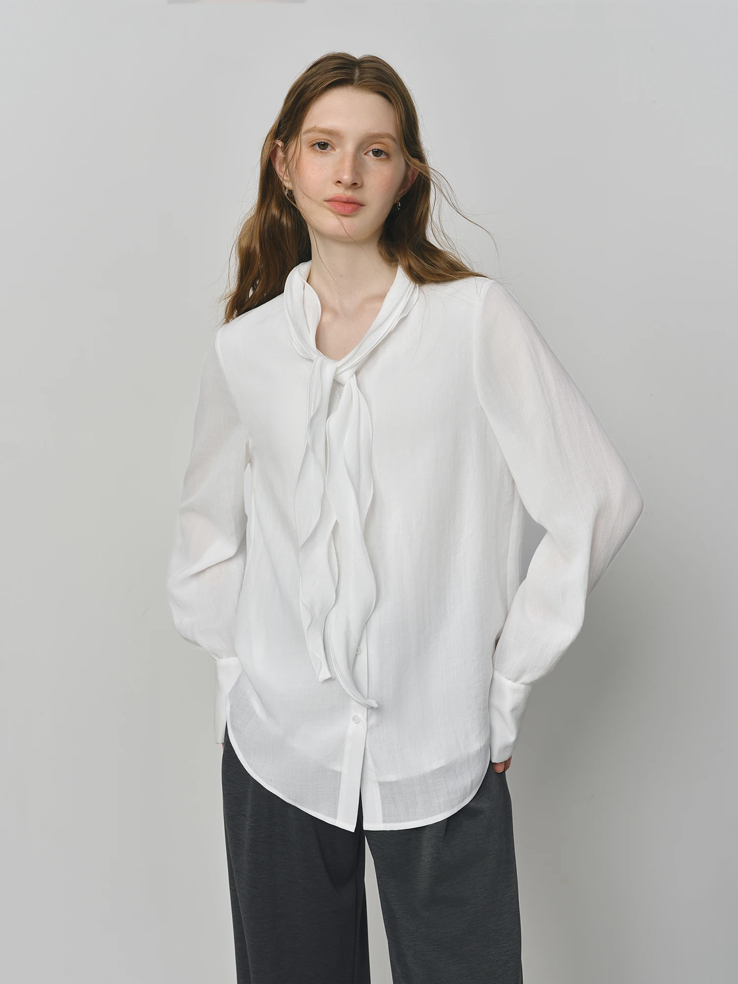The Autumn Elegant Blouse with Asymmetric Flounce is designed for the discerning woman who values both sophistication and comfort. Crafted from a lightweight chiffon blend, this blouse provides breathability and ease of movement, making it suitable for various occasions such as office wear, casual outings, or special events.