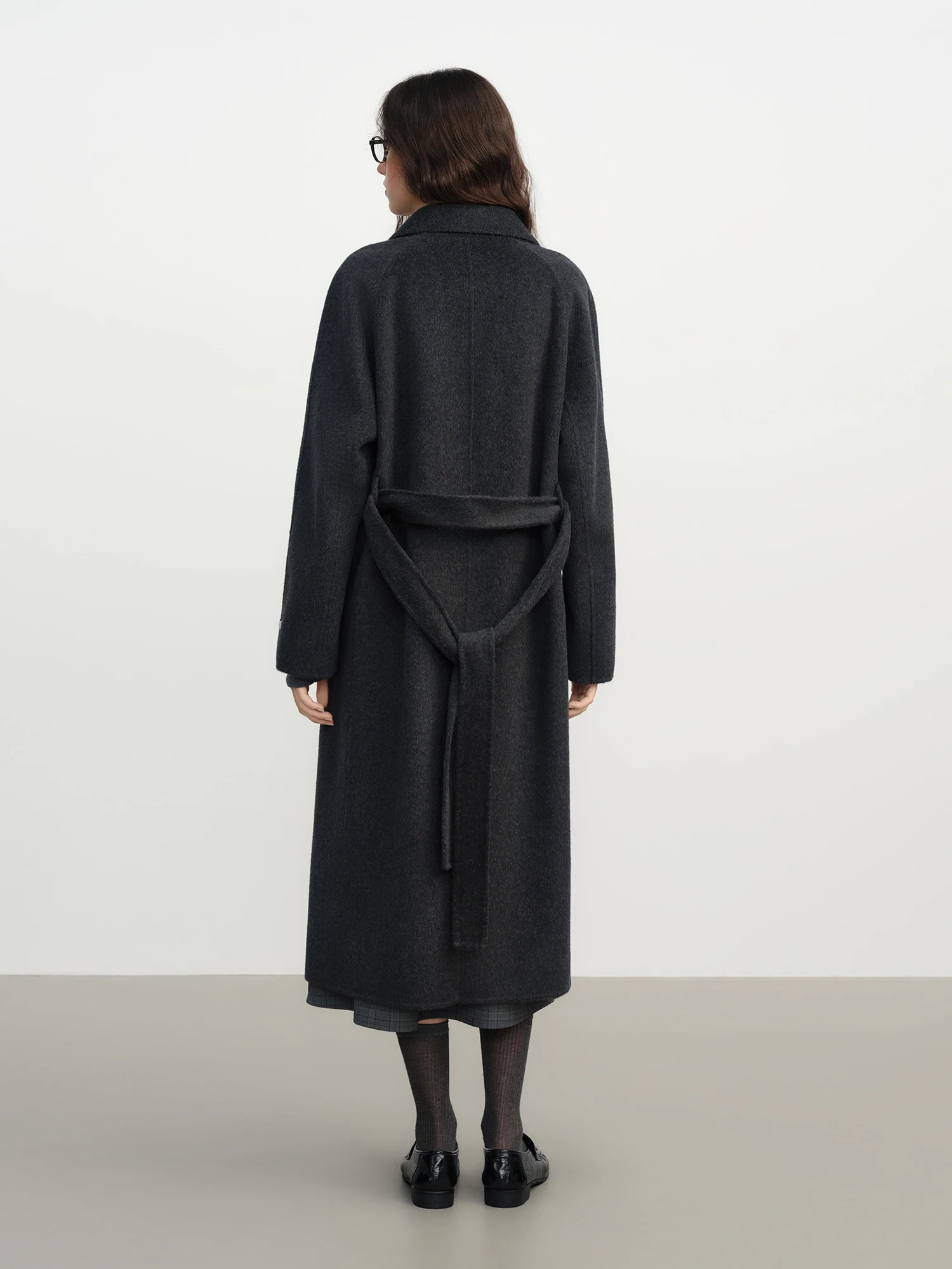 The Cashmere Double-breasted Woolen Coat in Light Blue is a refined addition to your autumn and winter ensemble. This long coat is designed to offer warmth while maintaining an elegant silhouette, making it an ideal choice for various occasions.