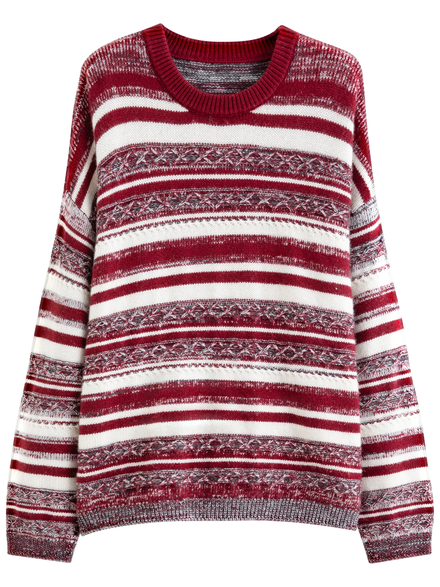 Vintage Red Striped Knit Sweater with Loose Fit