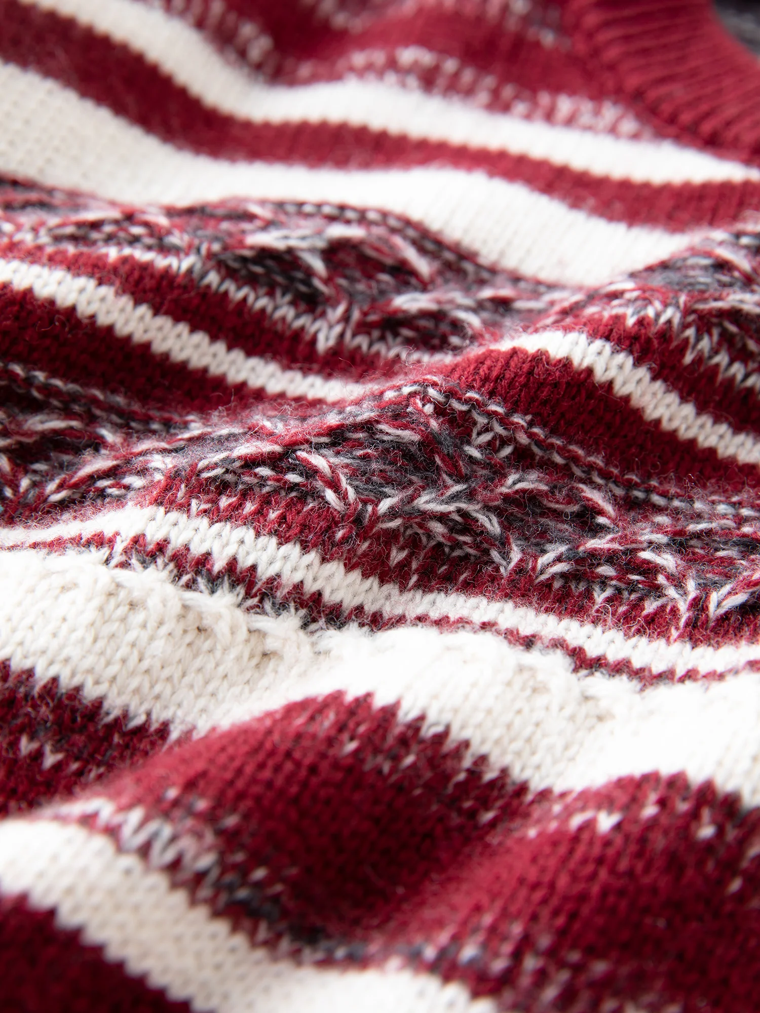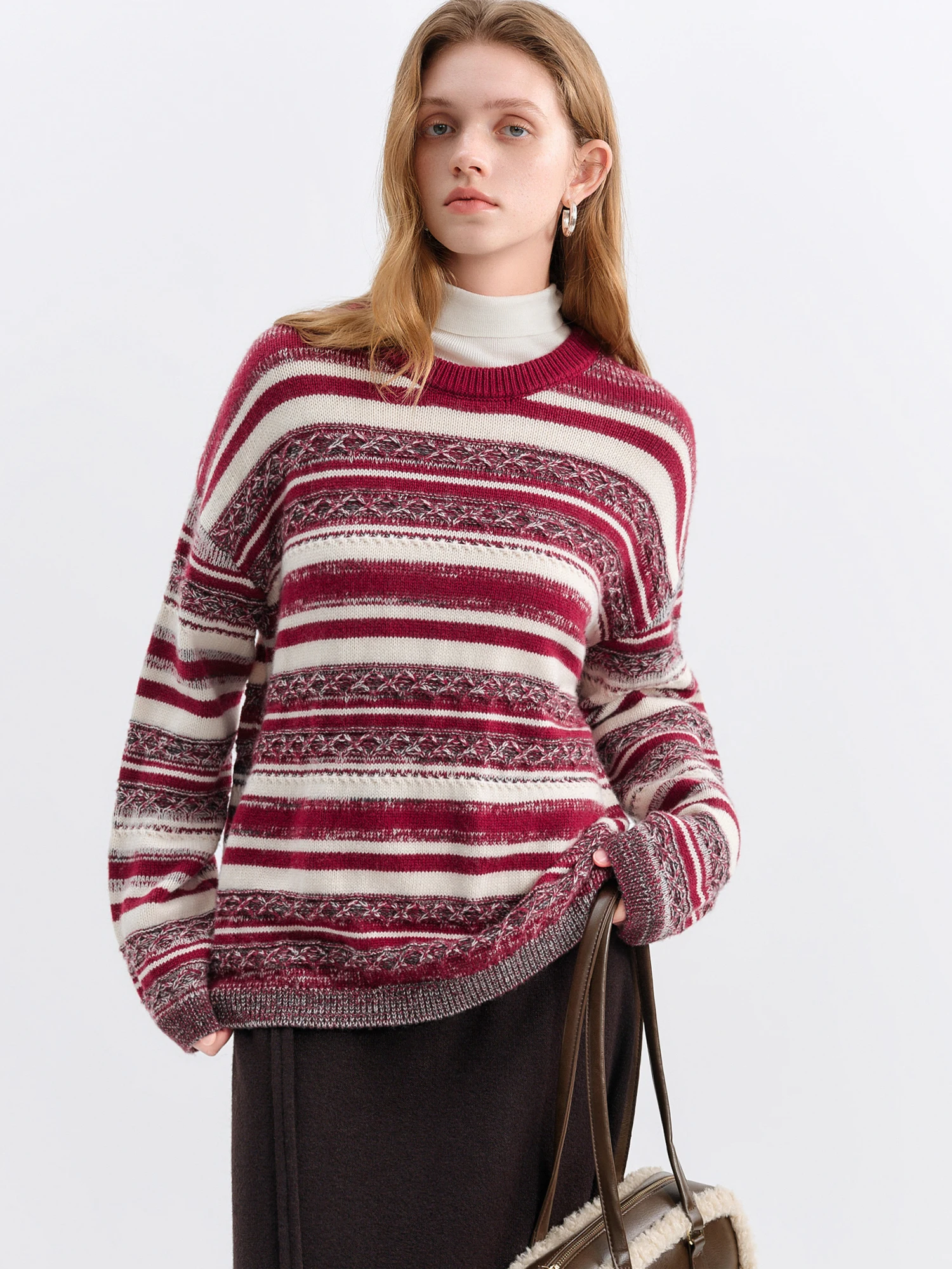 The Vintage Red Striped Knit Sweater is designed for women seeking refined comfort with a modern edge. Its loose fit and soft blend of wool, polyamide, and acrylic offer warmth and ease, perfect for layering throughout autumn and winter.