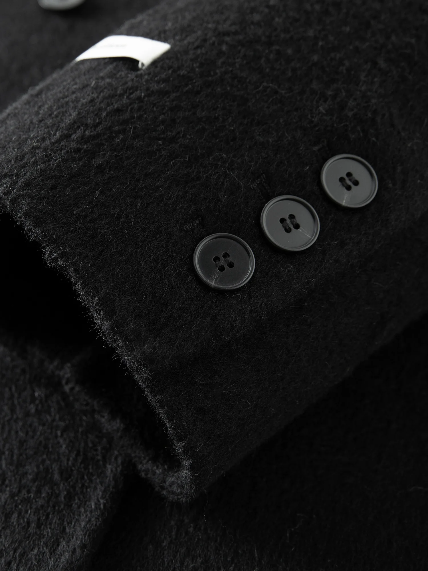 Crafted from a wool blend with camel hair, this overcoat is designed to feel warm and substantial against the skin. For the most accurate fabric and care information, please check the Product Details.