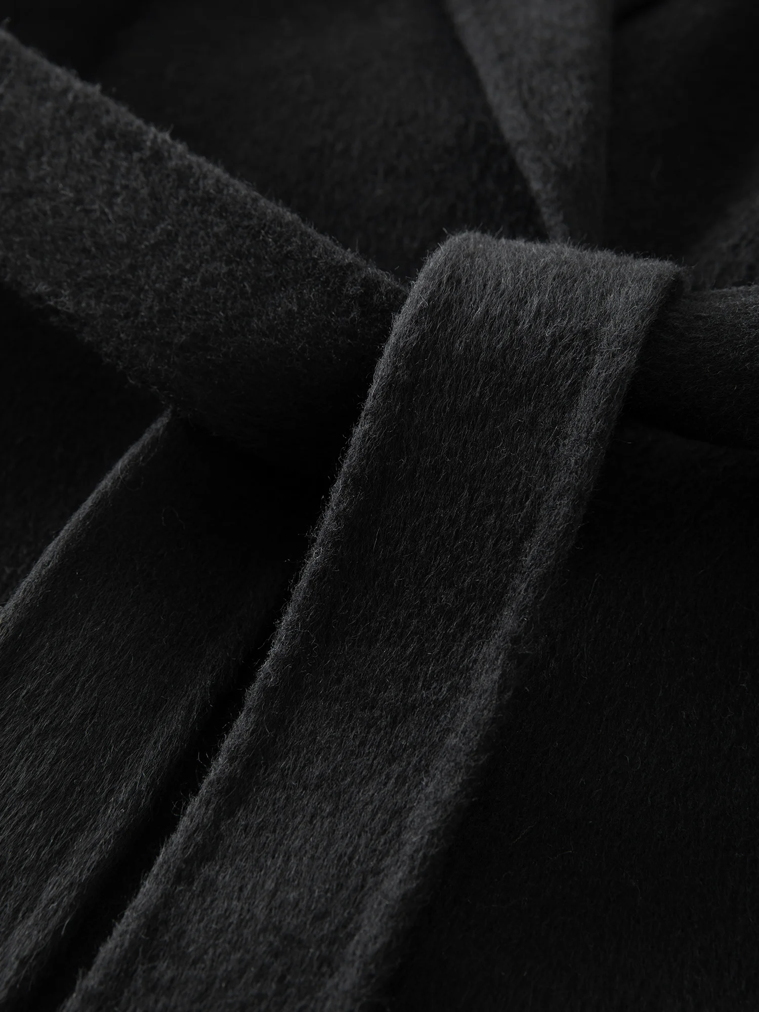 This double-breasted overcoat is tailored for the discerning woman, blending warmth with elegance for the cooler months. It serves as a versatile addition to your wardrobe, suitable for both formal evening events and professional settings.