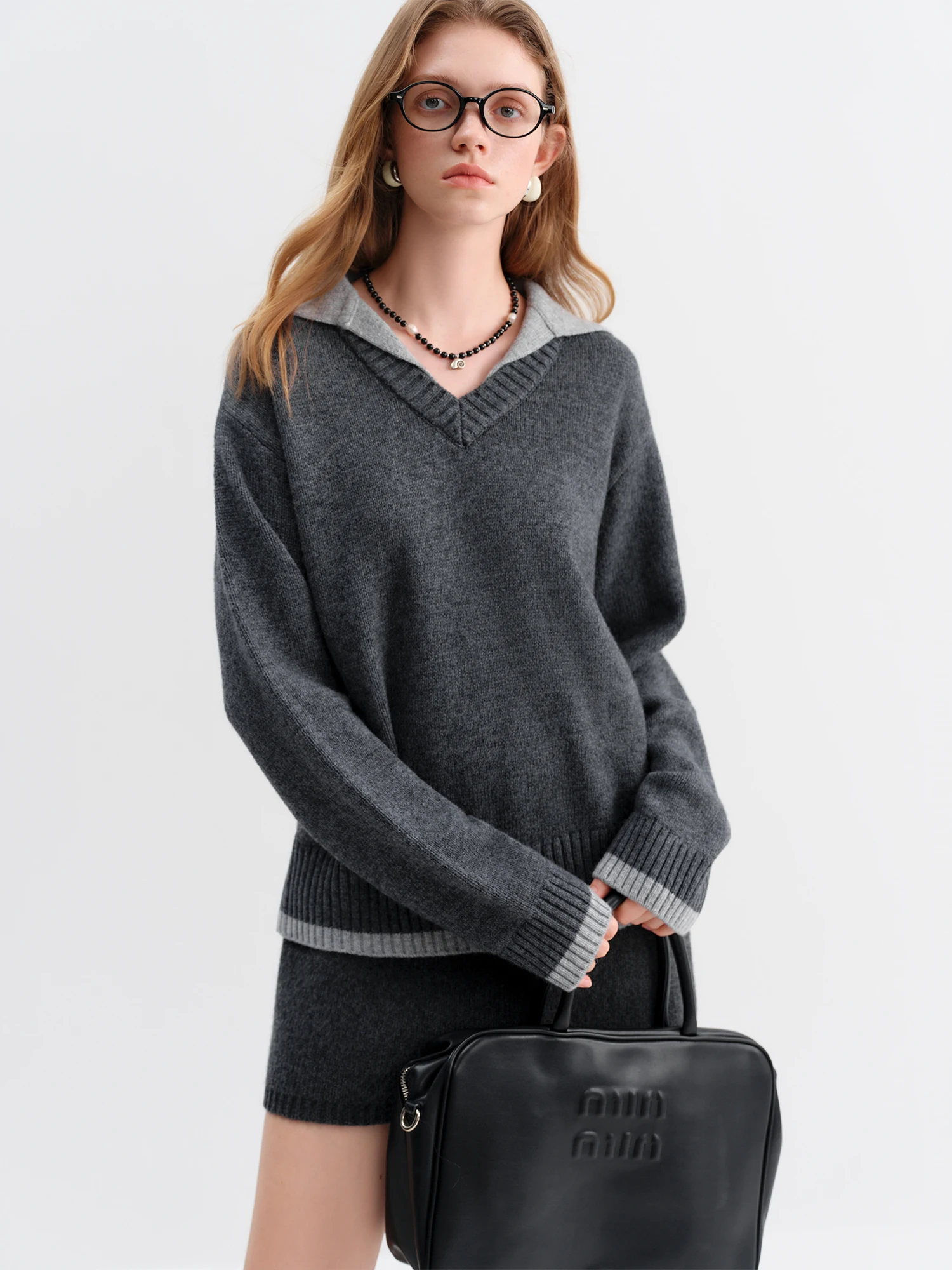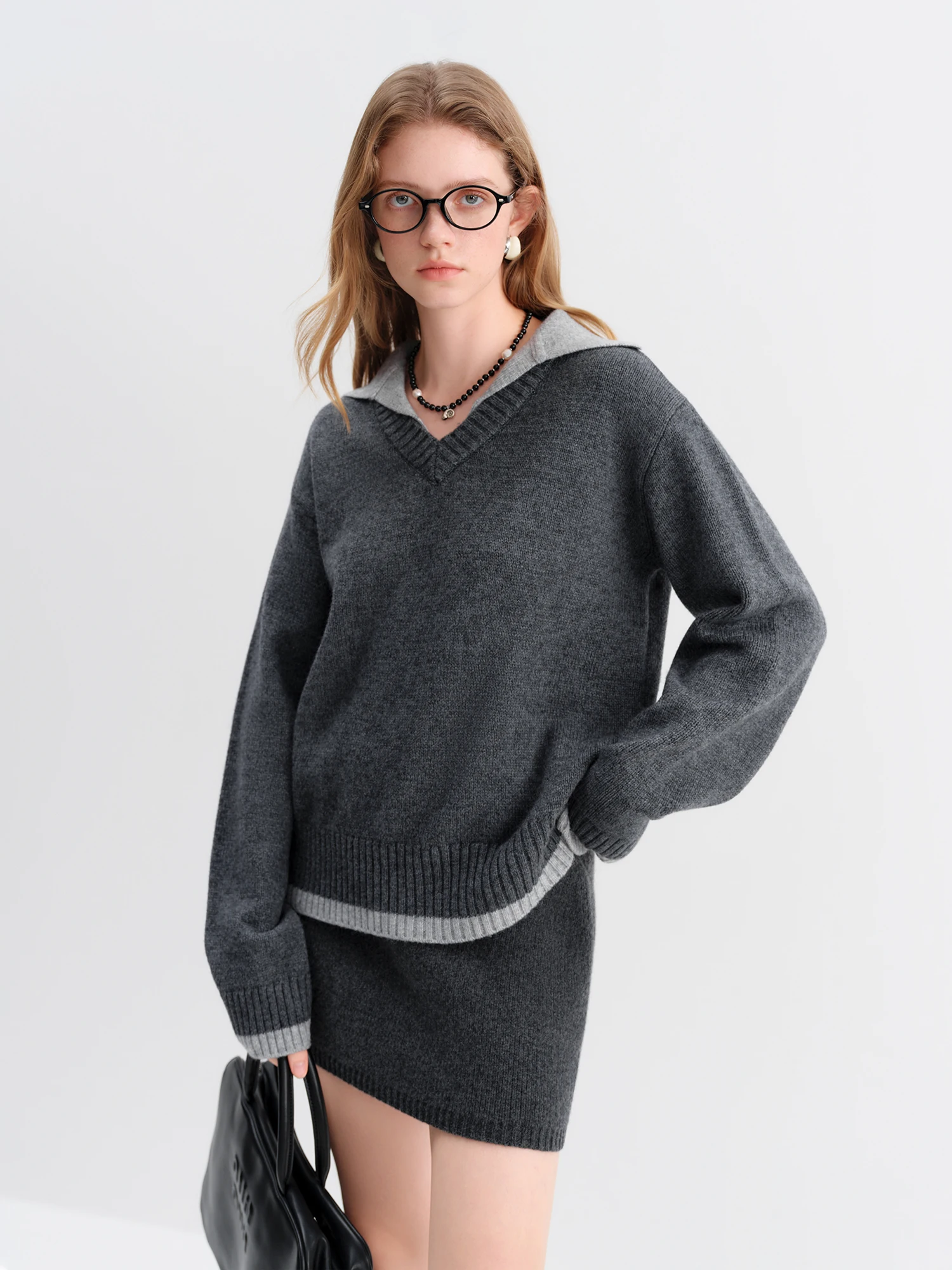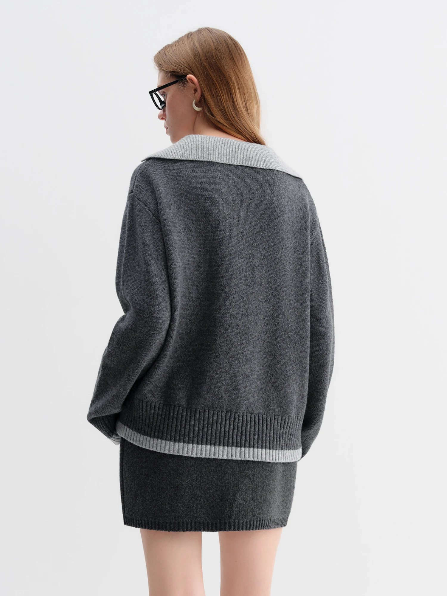 2 reviews for Contrast Colour Lapel Pullover Sweater for Women