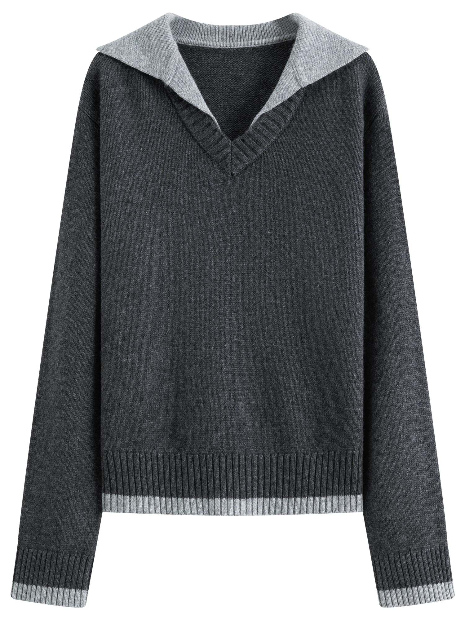 Introducing the Contrast Colour Lapel Pullover Sweater, a versatile addition to your autumn and winter wardrobe. This elegant pullover is designed for the modern woman aged 18-24, offering a refined aesthetic that pairs beautifully with both casual and smart-casual outfits.