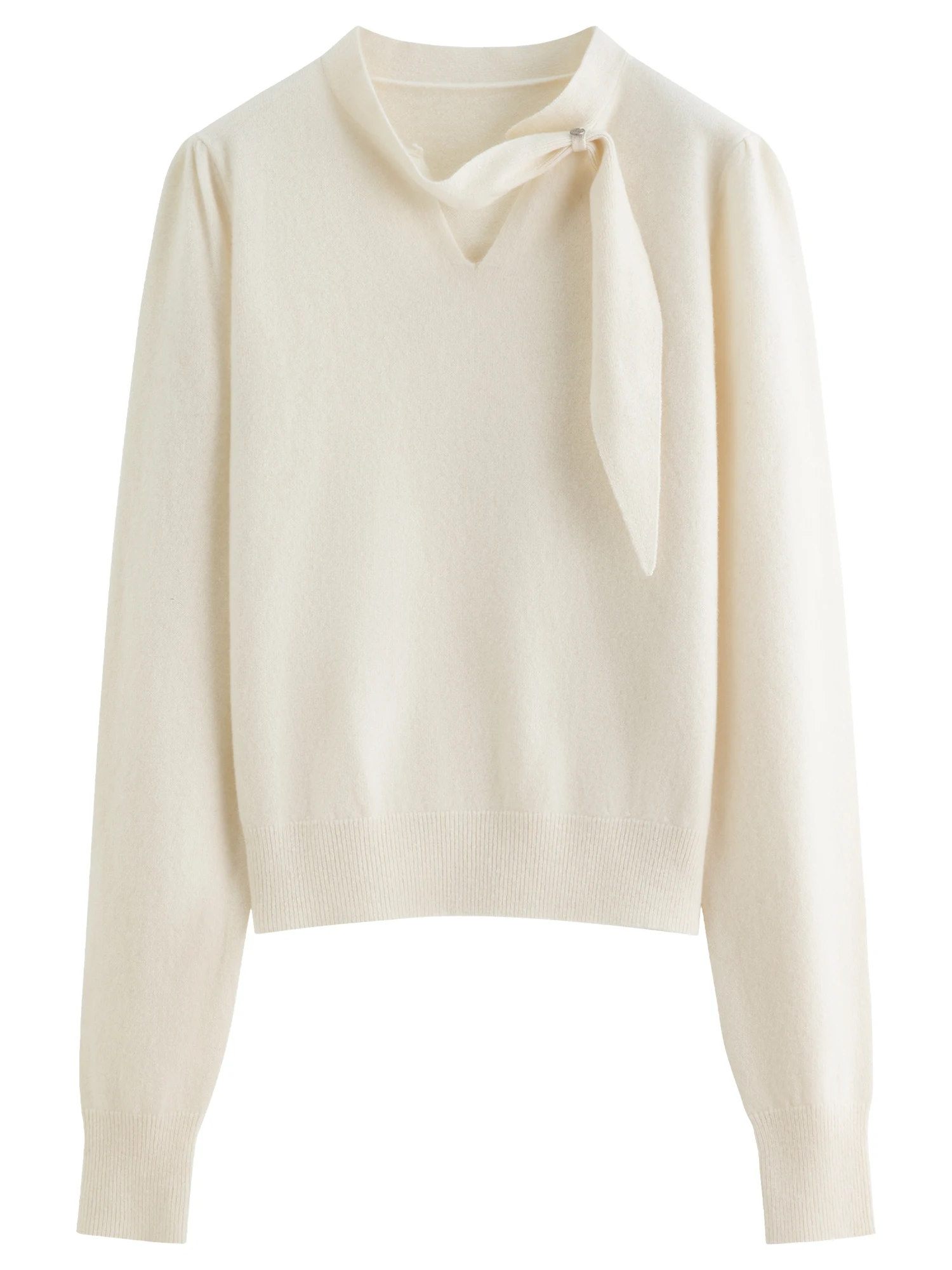 - Features a refined V-neckline and elegant puff sleeves for a distinctive silhouette.