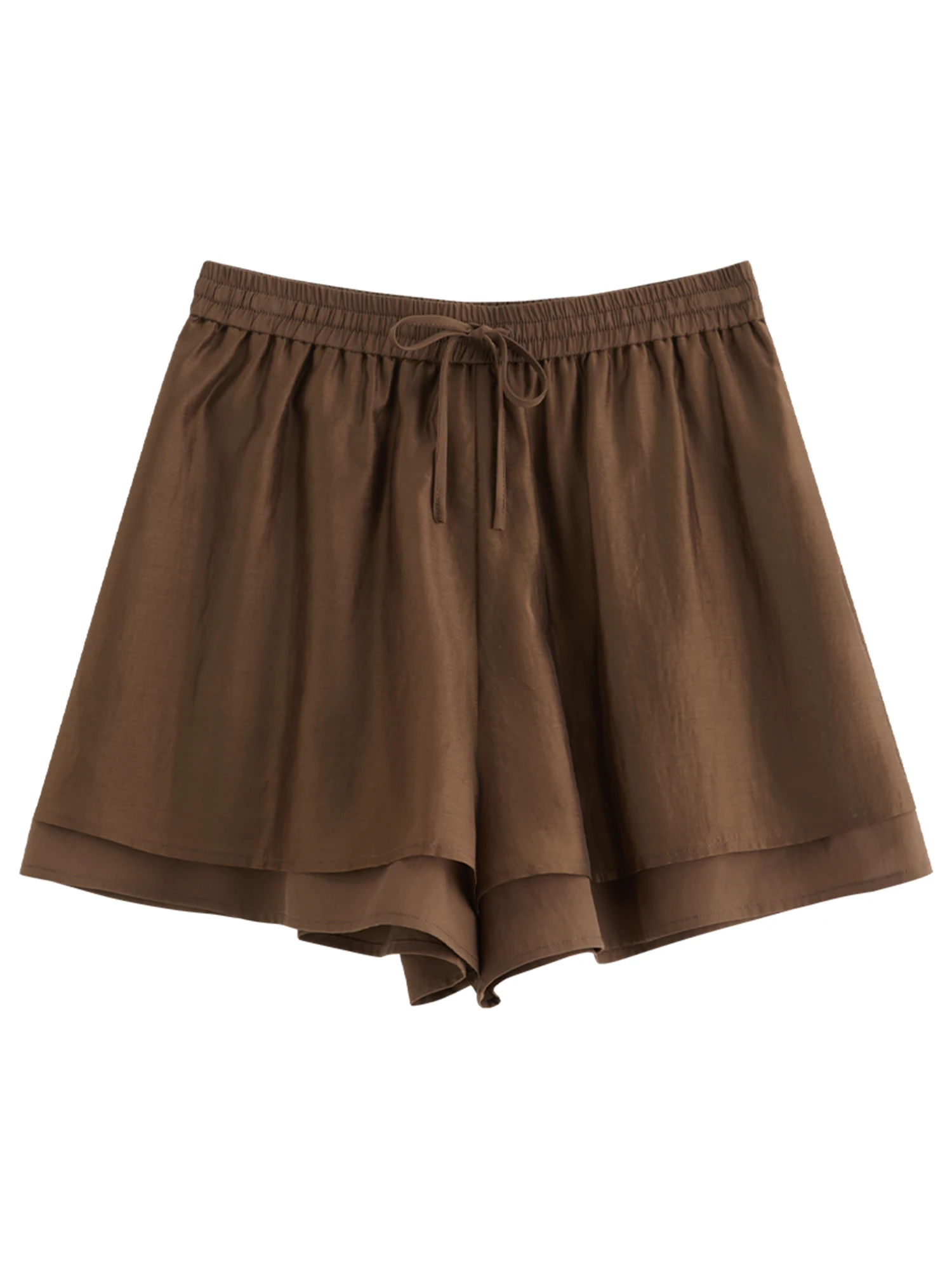Lyocell Double-Layer Elastic Waist Casual Shorts