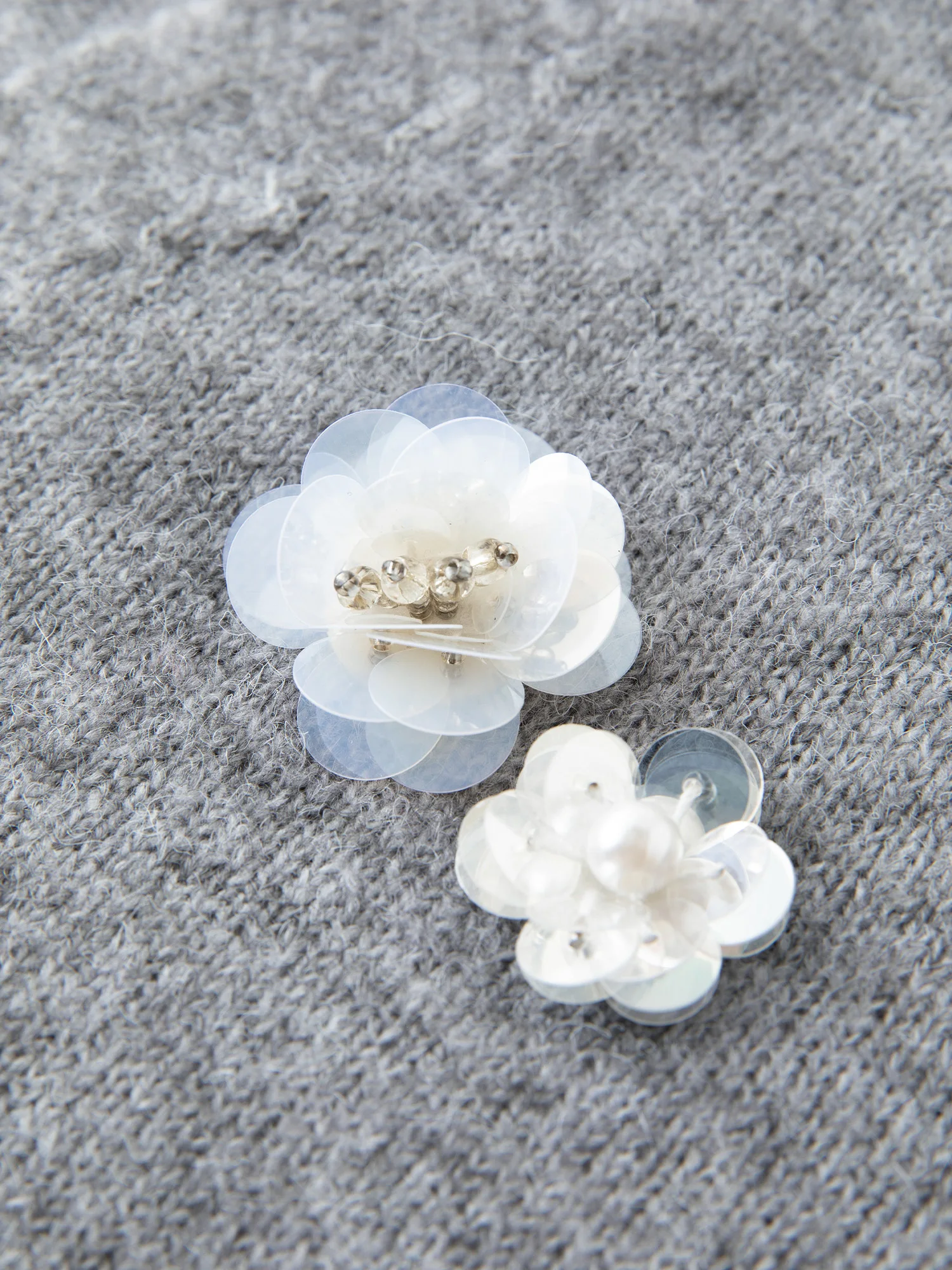 8 reviews for 3D Beaded Flower Knit V-Neck Cardigan in Light Grey