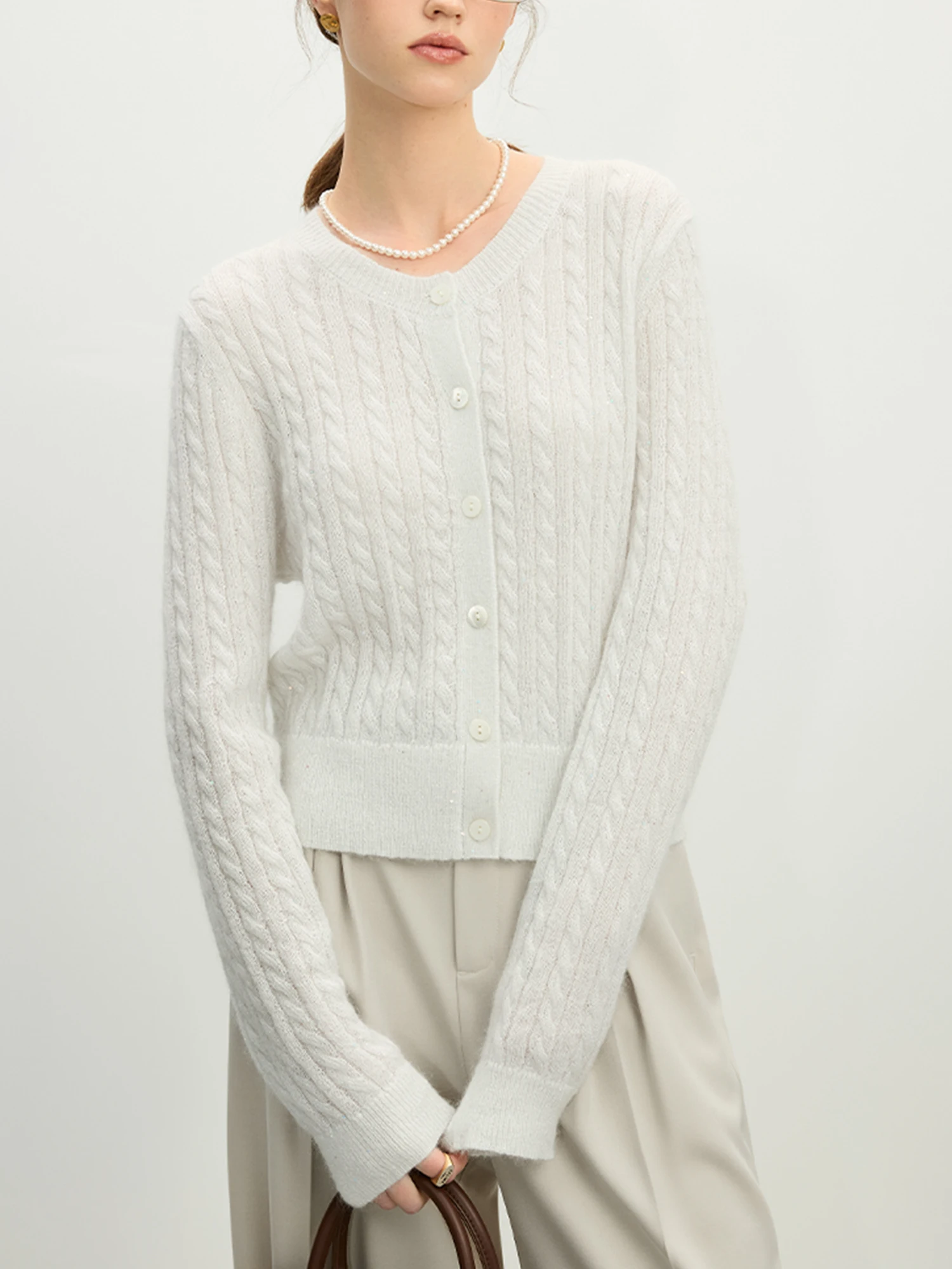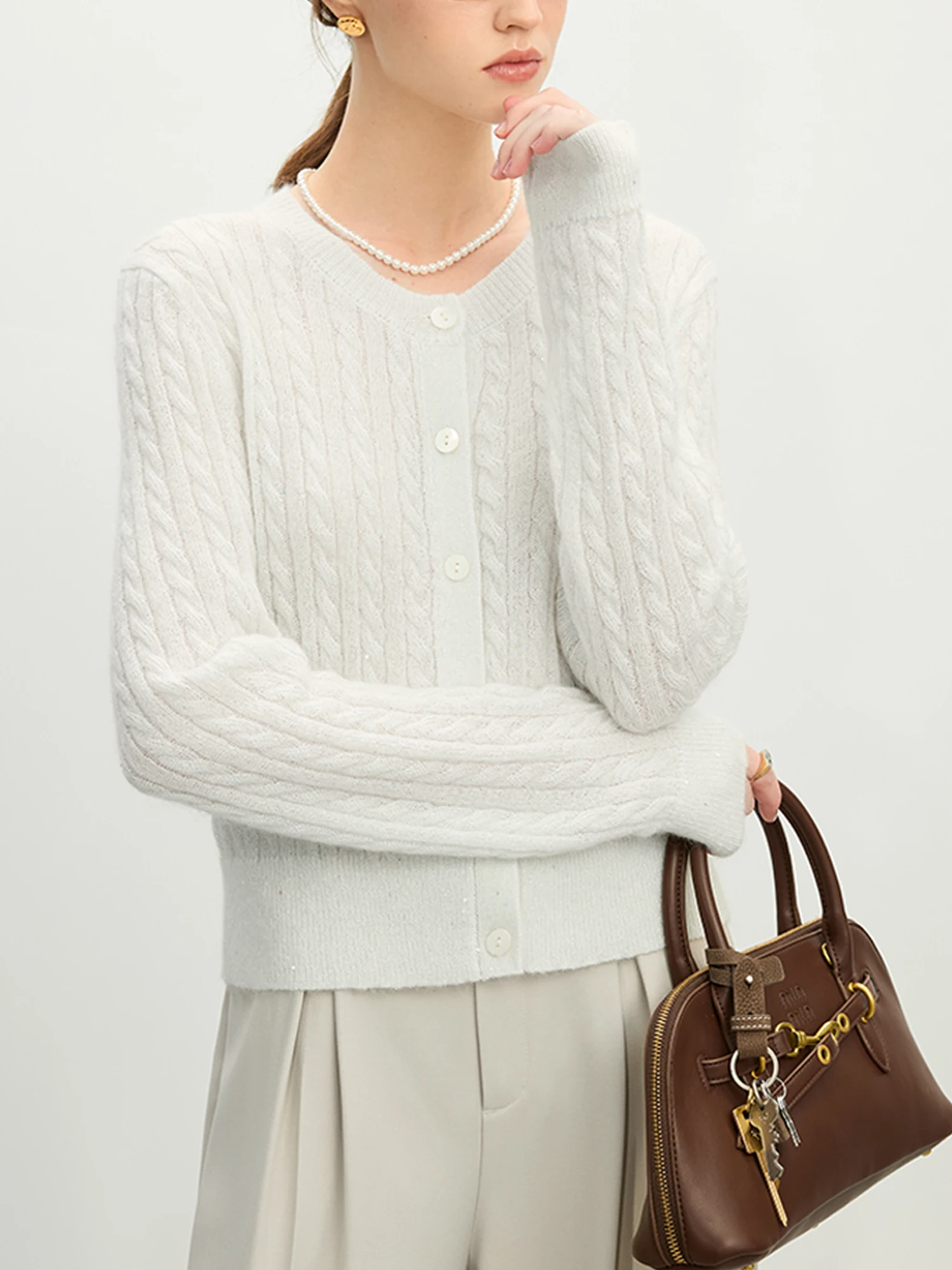 Embrace the elegance of our Knitted Cardigan, a sophisticated addition to your wardrobe designed for women who appreciate refined style. Crafted from a luxurious blend of viscose, wool, mohair, and silk, this cardigan offers a soft touch and a comfortable fit.
