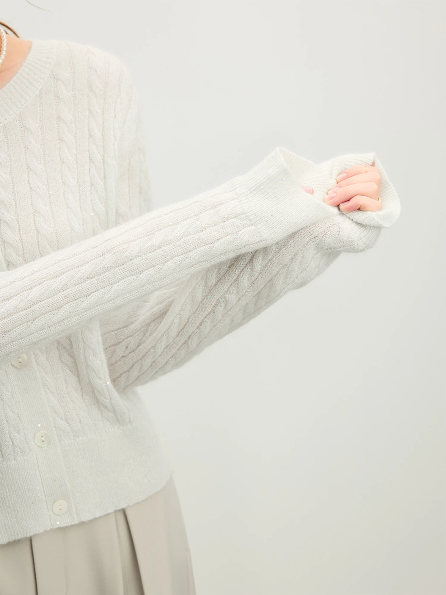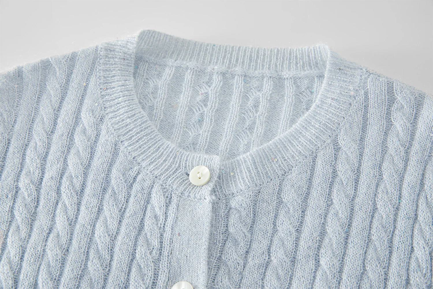 This cardigan is designed to feel soft against the skin while providing medium stretch for ease of movement. For specific fabric care and composition details, please check the Product Details.