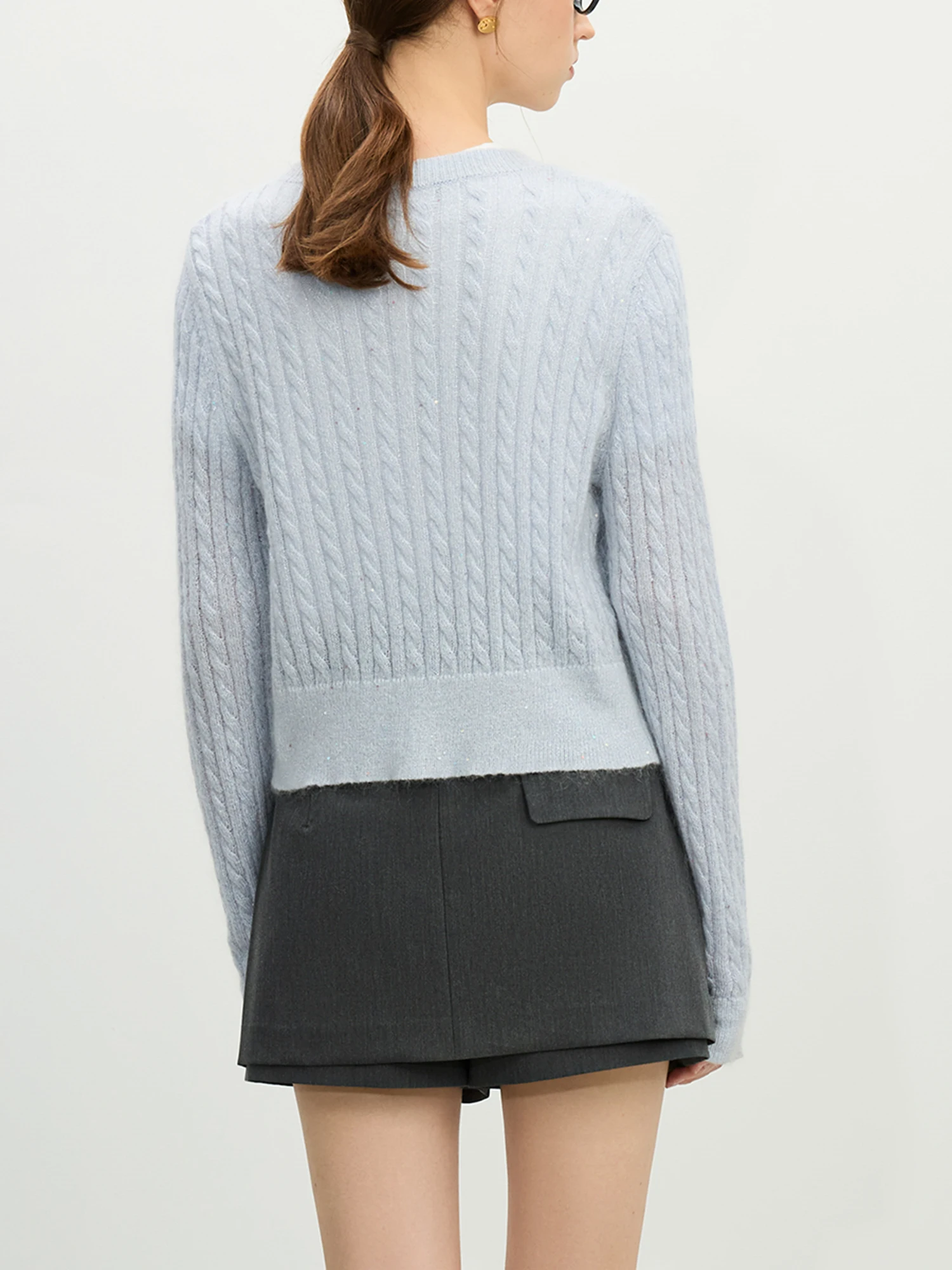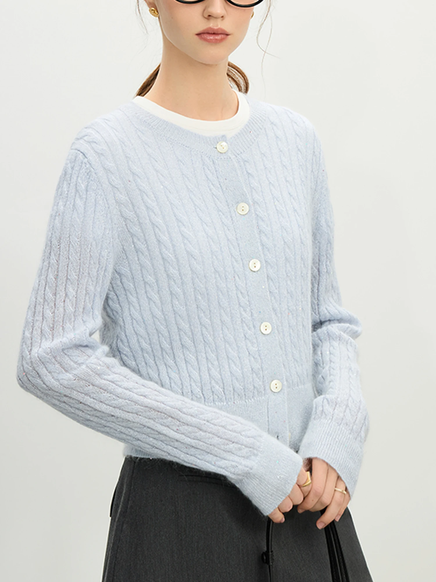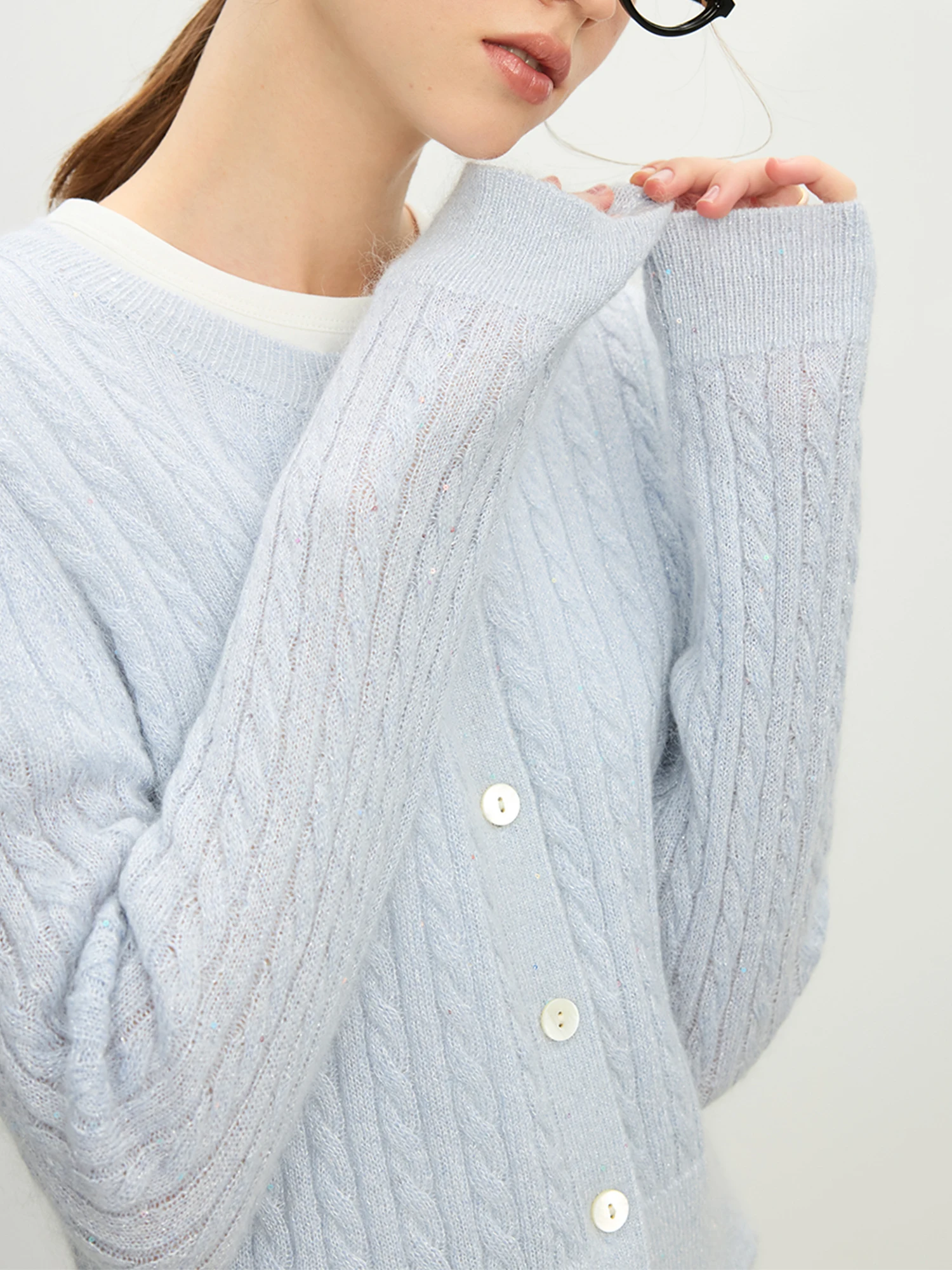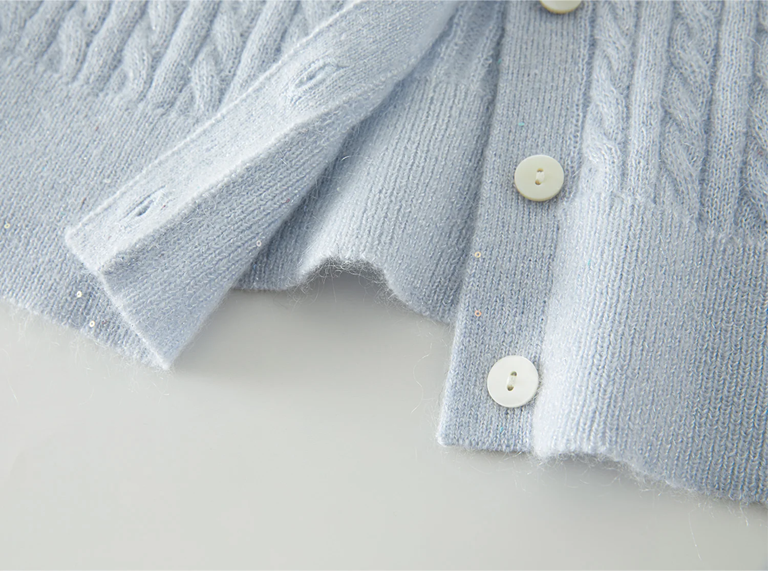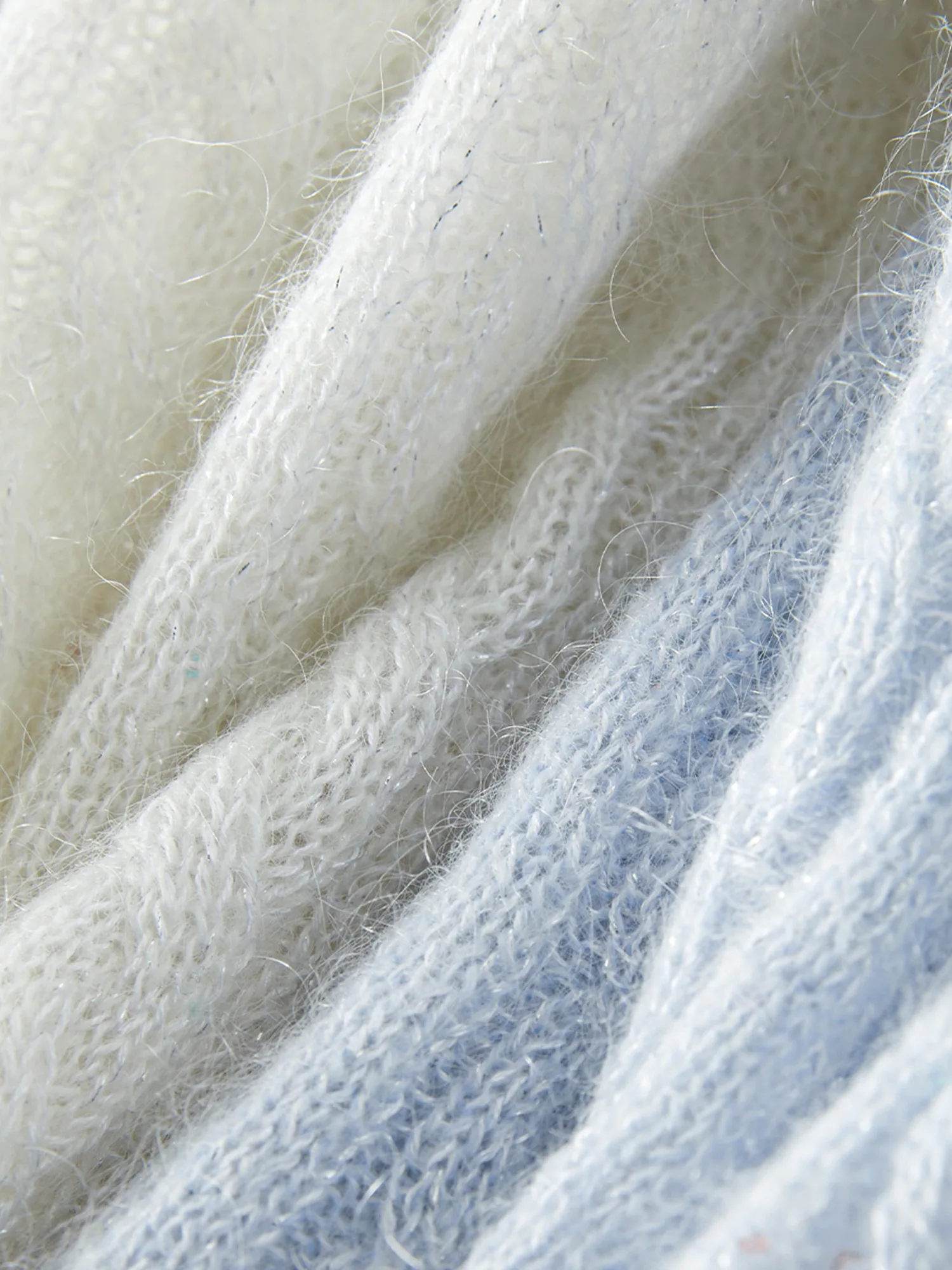 2 reviews for Knitted Cardigan with Silk and Wool Blend in Blue and White
