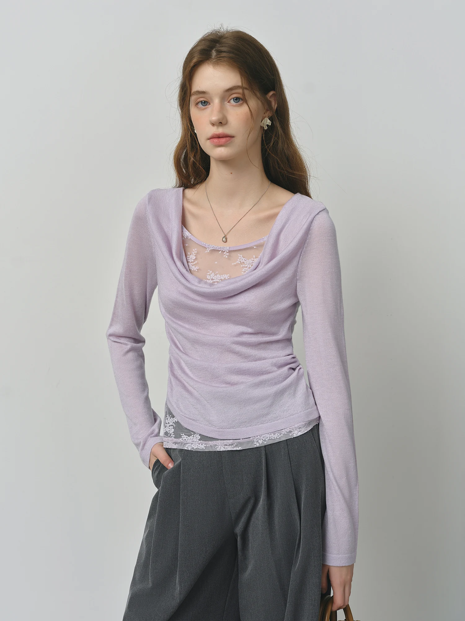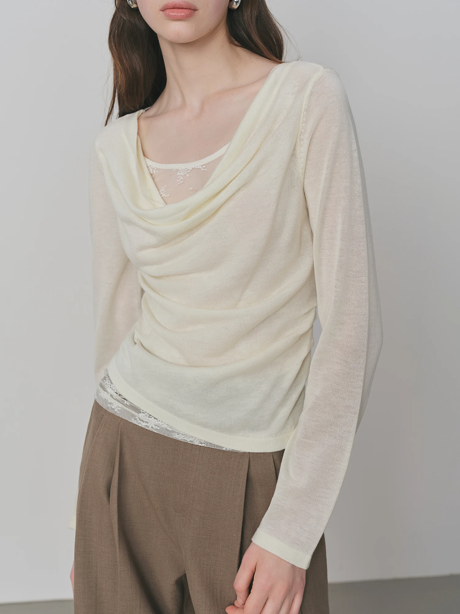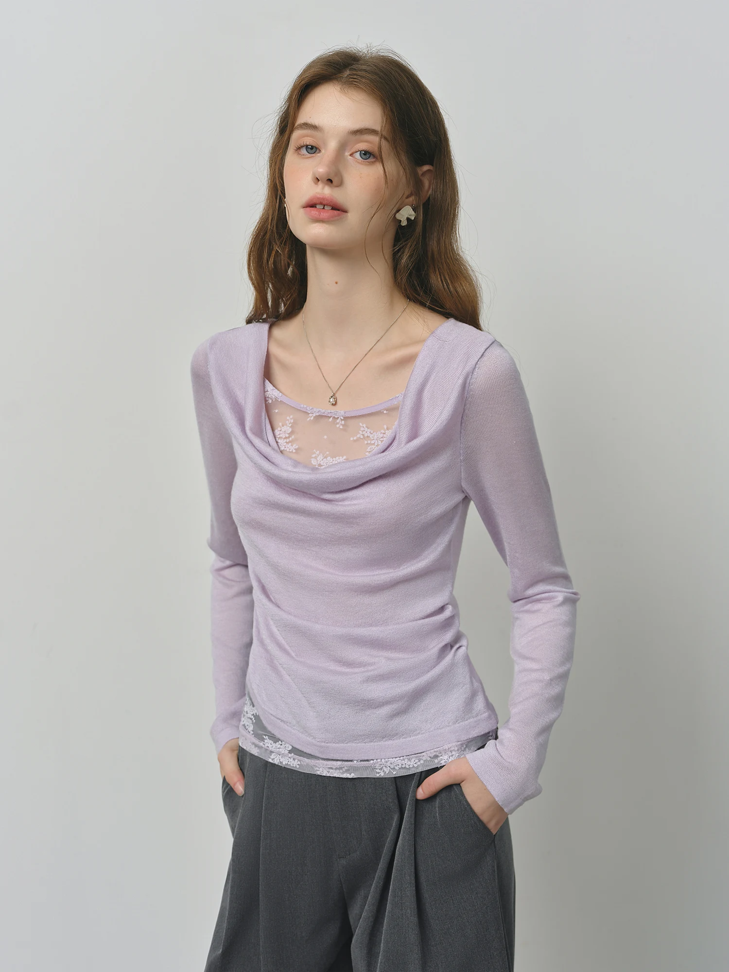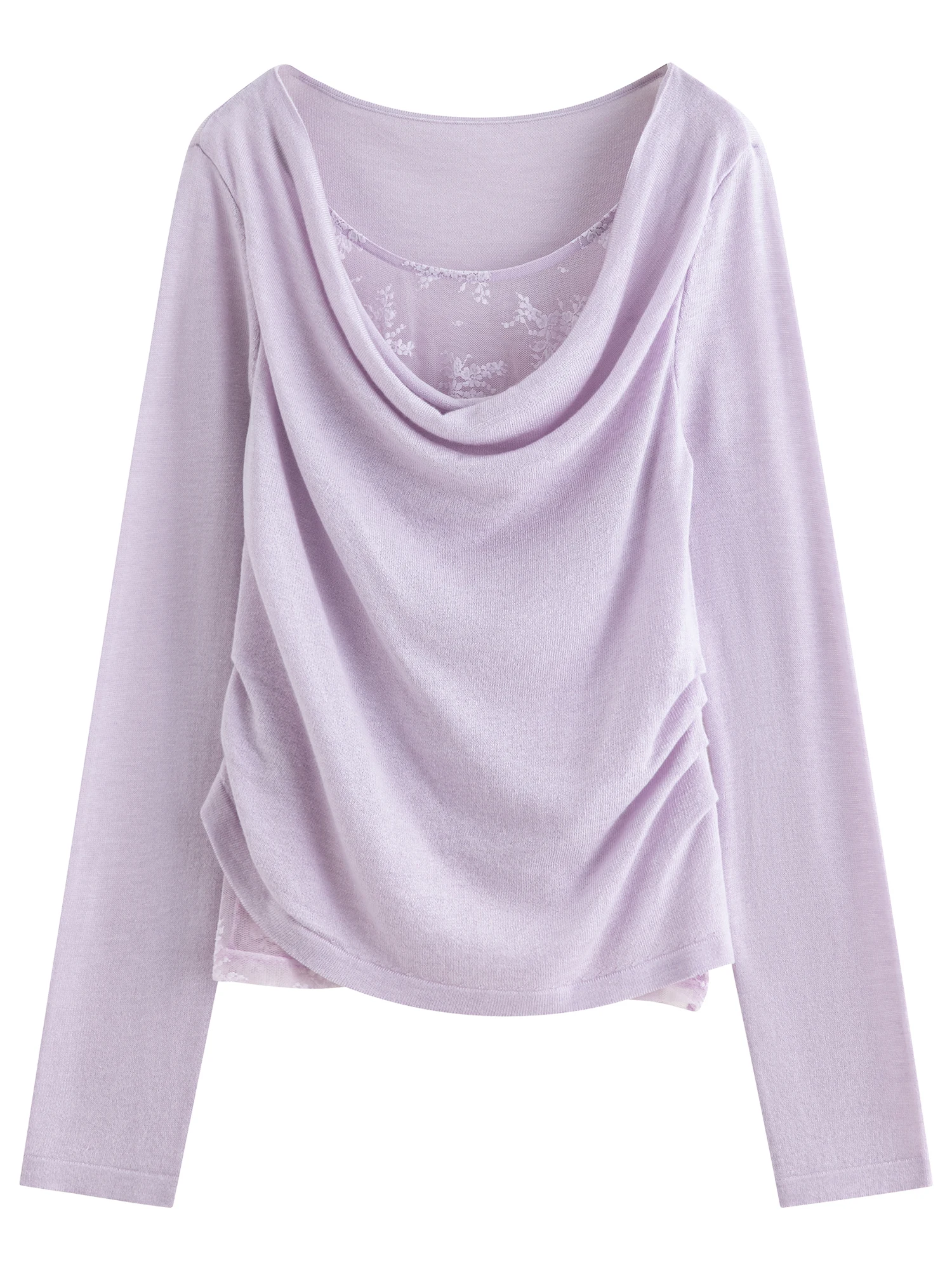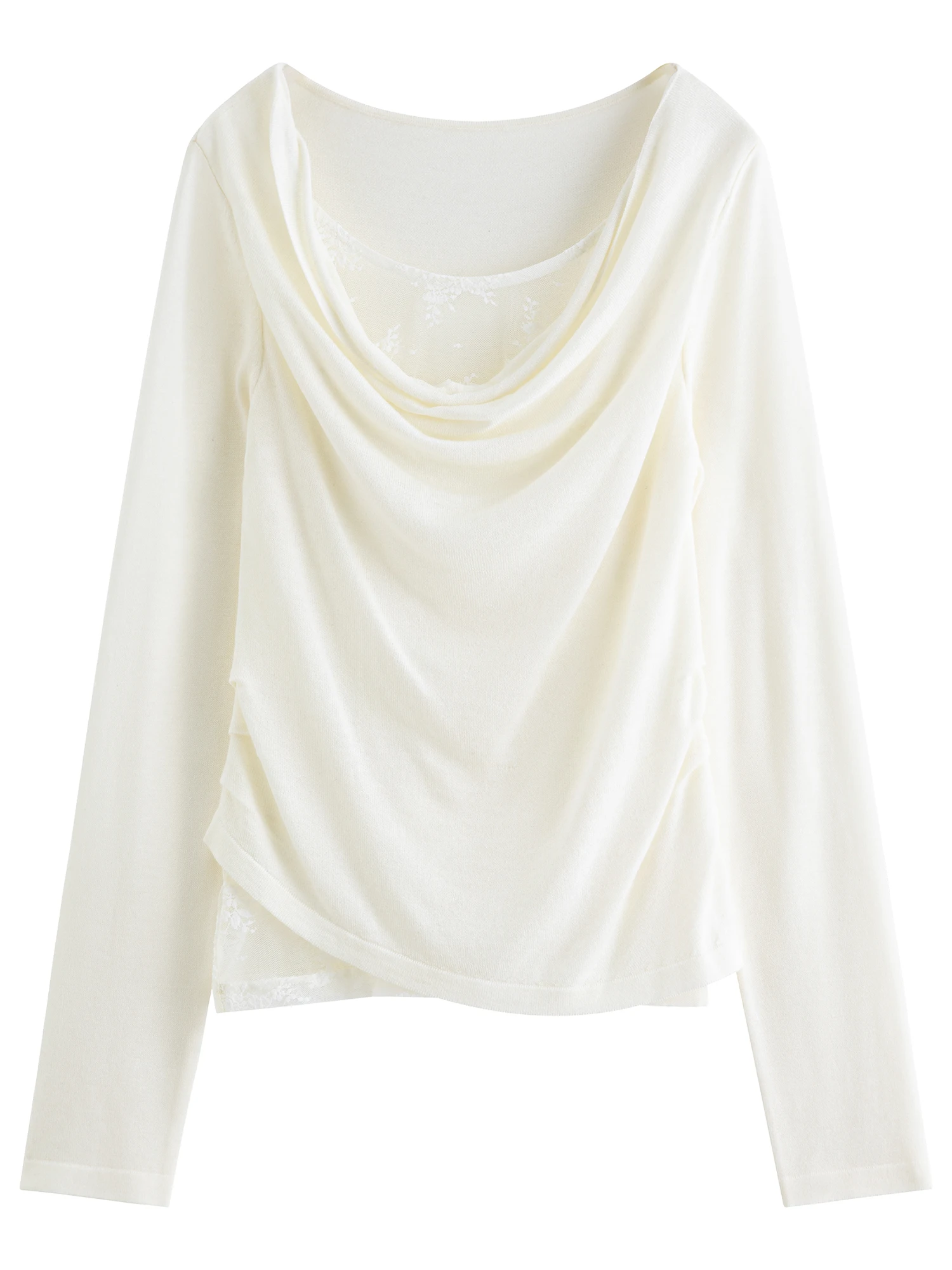 Can I wear this sweater for both casual and dressier occasions?Absolutely. The lace decoration and irregular collar add subtle elegance, making it versatile for casual outings or more refined settings.