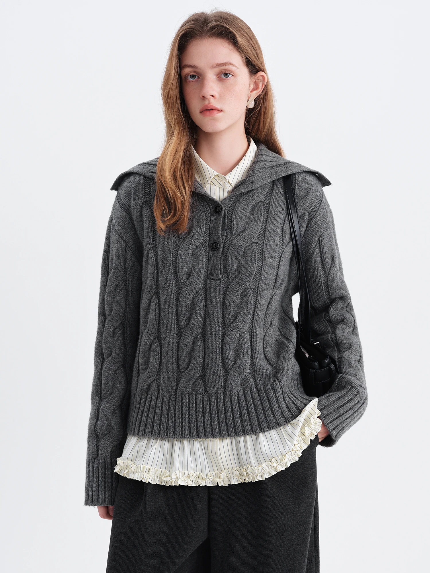 Reversible Floral Knit Sweater with Turned-Up Collar – Regular Fit