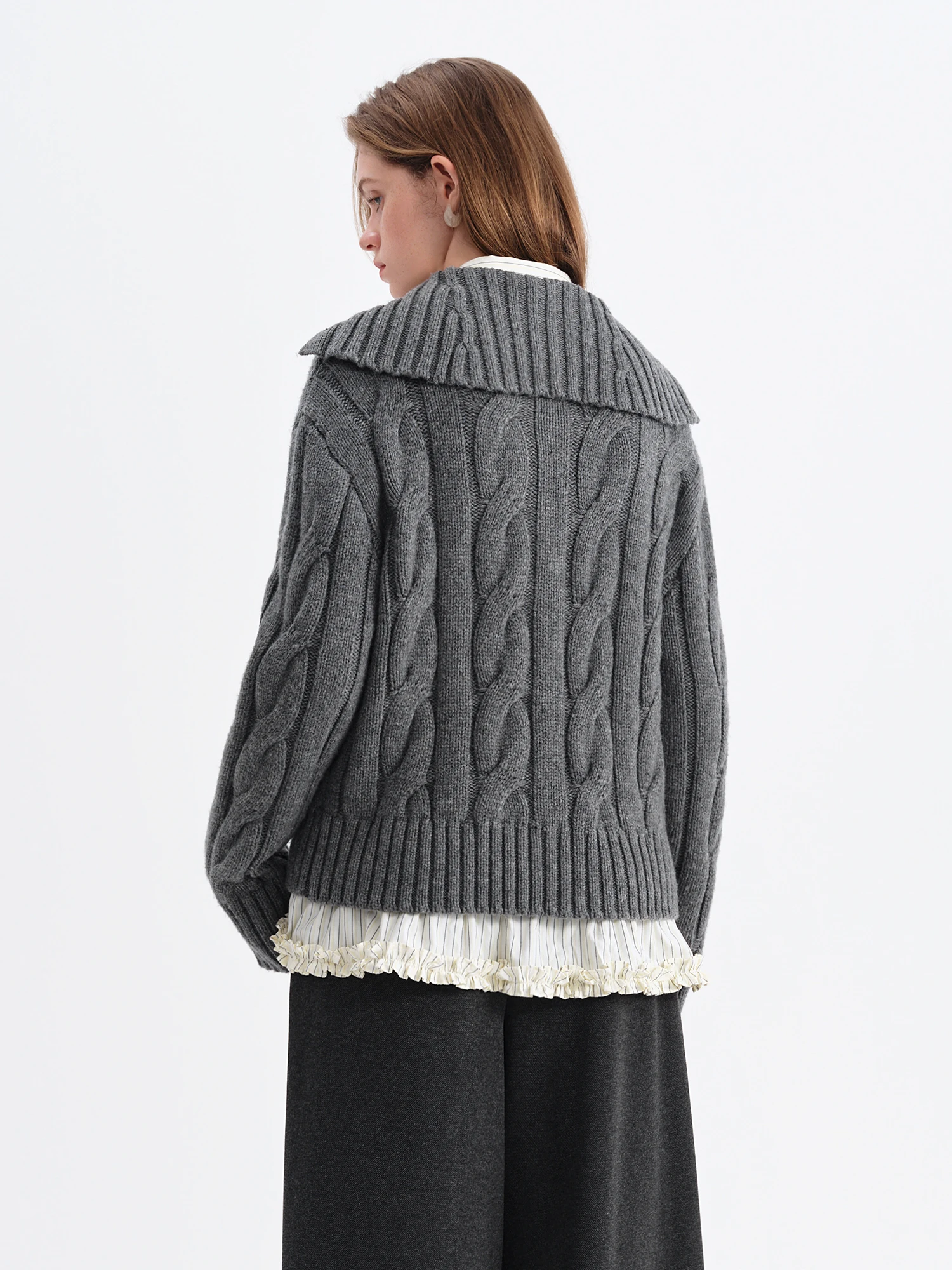 The Reversible Floral Knit Sweater is tailored for the modern woman seeking refined comfort during the autumn and winter months. Featuring a turned-up collar and a regular fit, this piece offers warmth and versatility for both office environments and casual occasions.