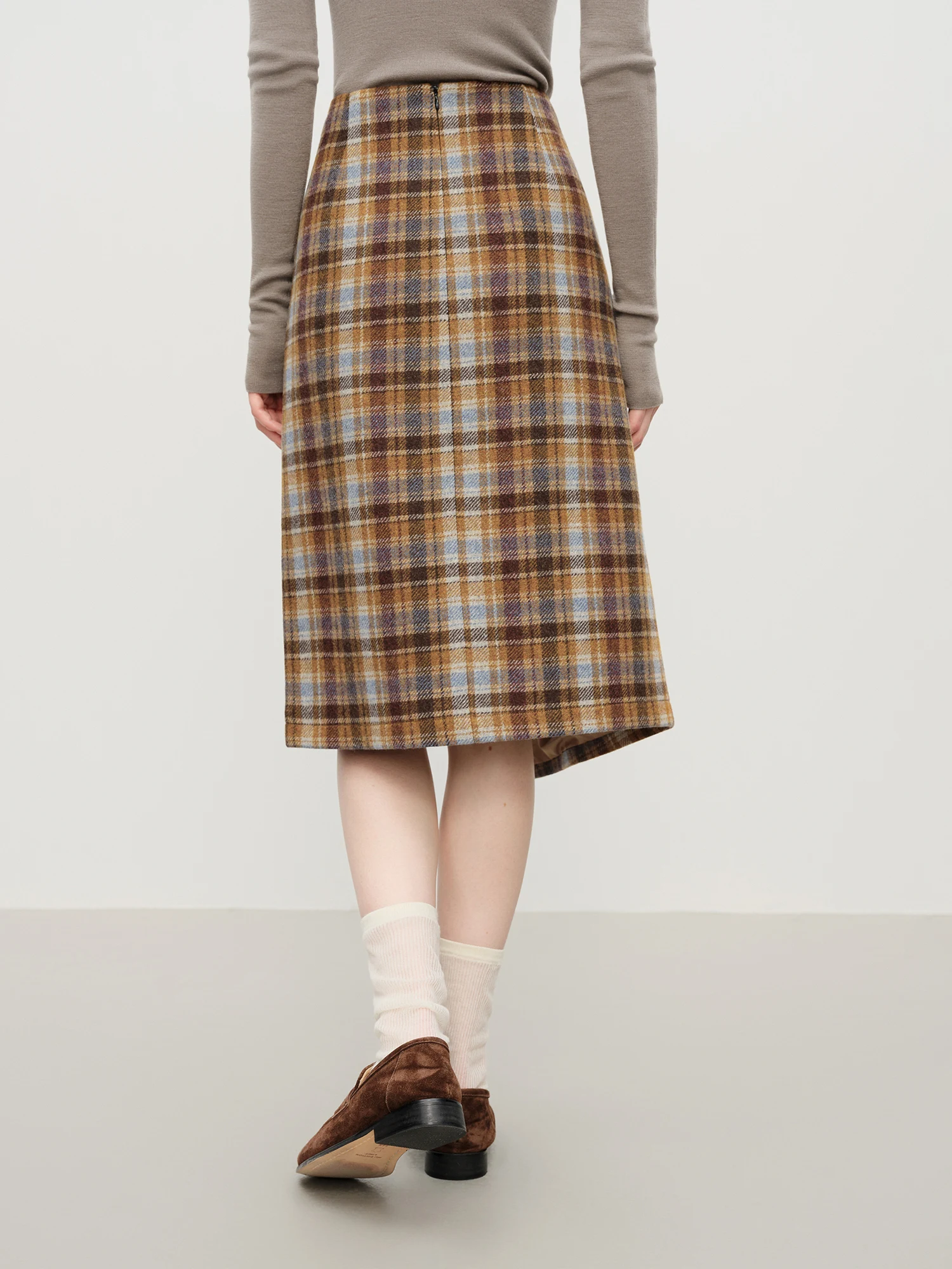 2 reviews for Vintage College-Inspired Asymmetrical Slit Skirt in Brown Plaid