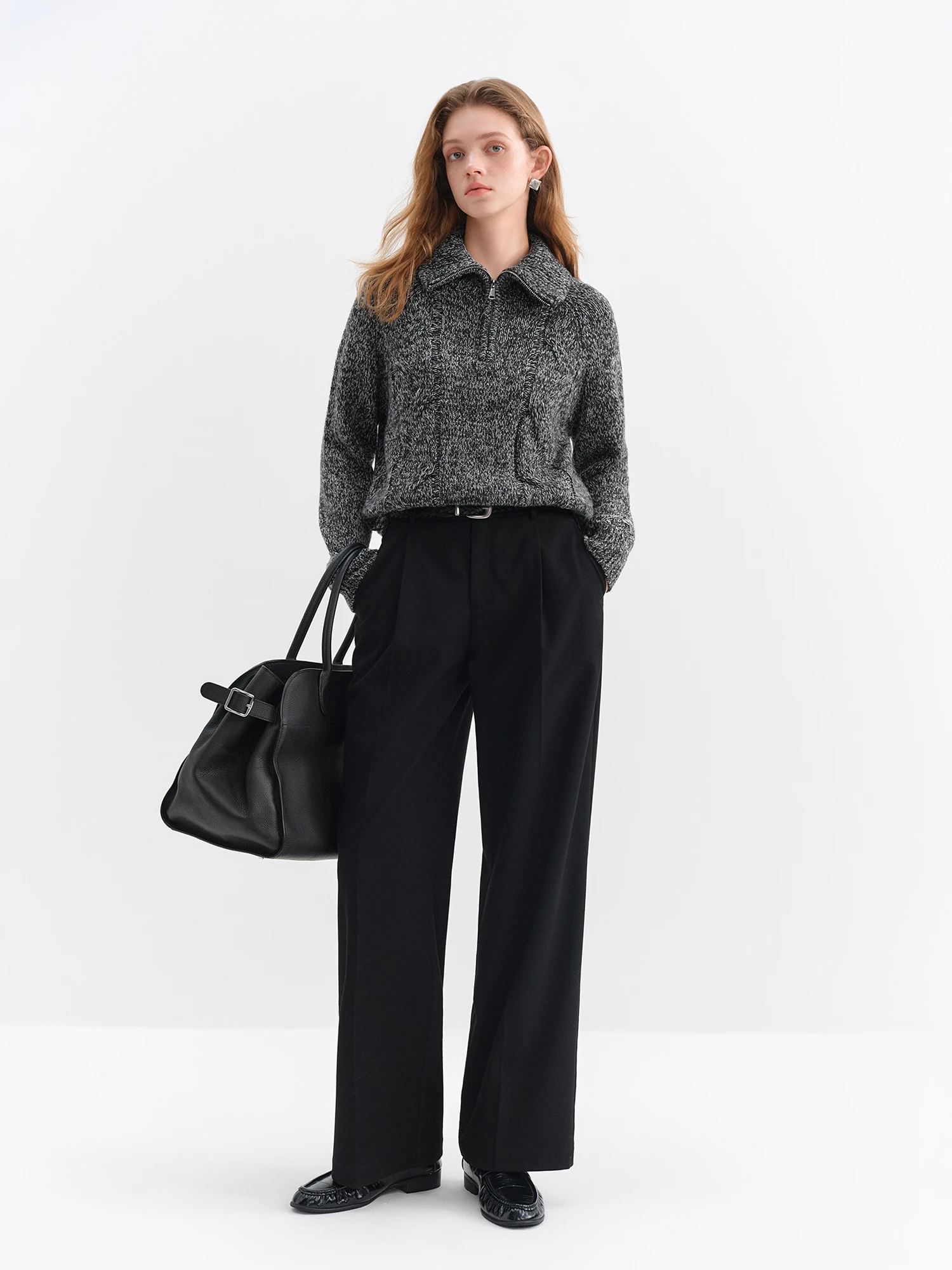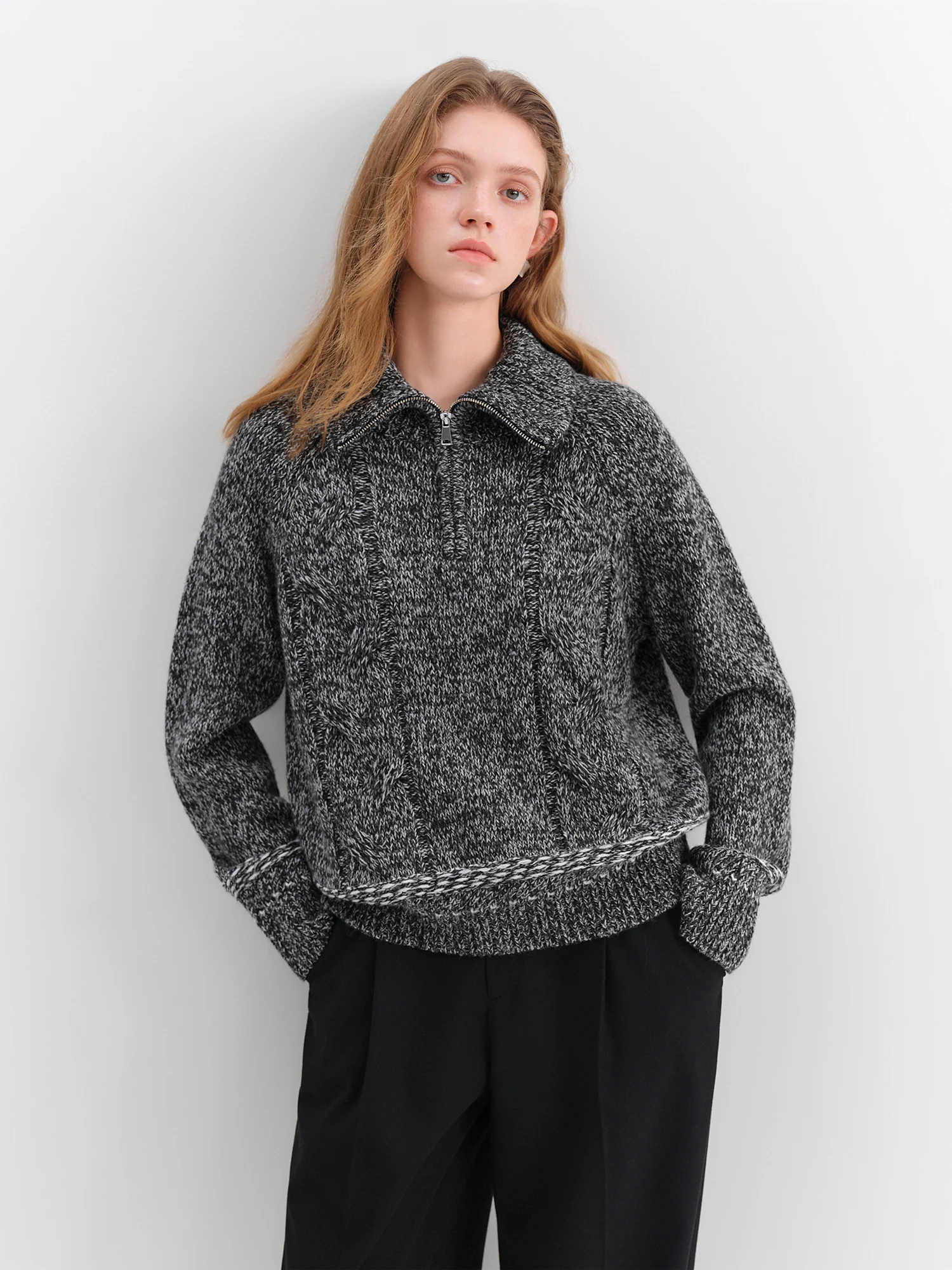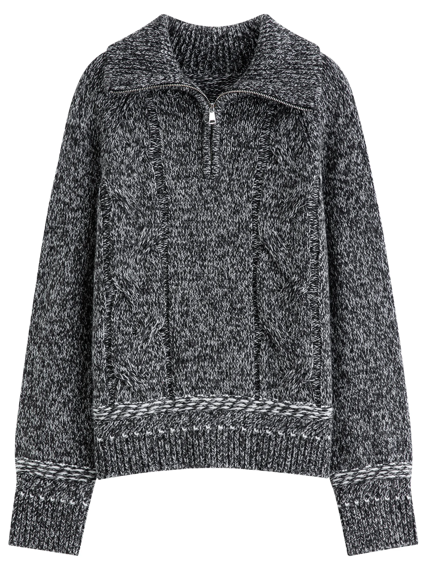 Discover the Vintage Grey Half Zip Pullover Knit Sweater, a sophisticated piece for the modern woman. Crafted from a blend of acrylic and sheep wool, this sweater offers a loose fit that drapes elegantly, making it suitable for both casual office wear and festive gatherings.