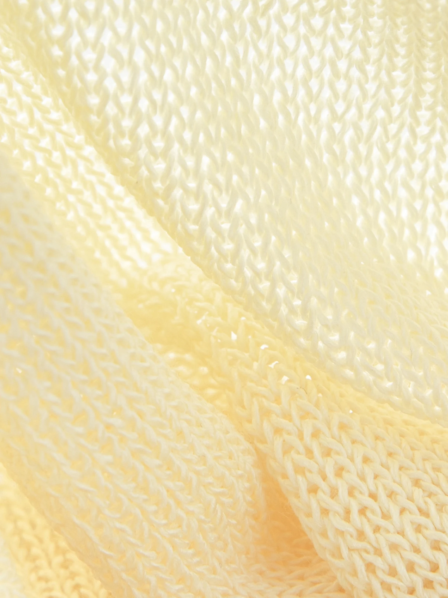Elevate your wardrobe with the Giselle Mesh Knit Button-Up Cardigan, designed for effortless style. Crafted from a luxurious blend of viscose and polyester, this lightweight cardigan features a loose-fitting silhouette and delicate ruched detailing. Perfect for all seasons and festivals, its vibrant yellow hue adds a touch of joy to any outfit. Versatile and chic, it's a must-have for modern women.