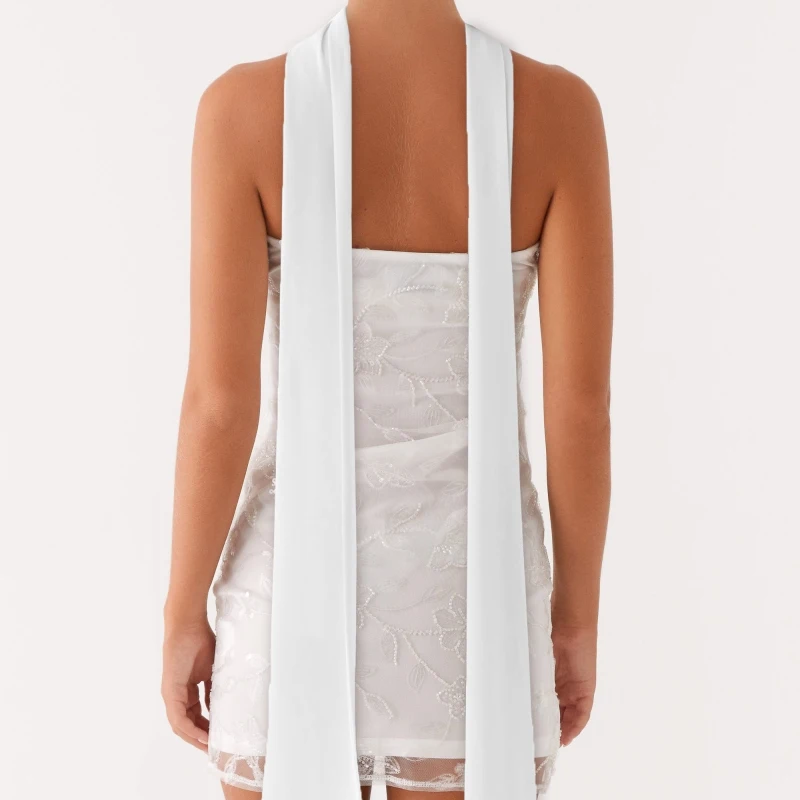 Floral Embroidered Summer Bandeau Mini Dress with Scarf