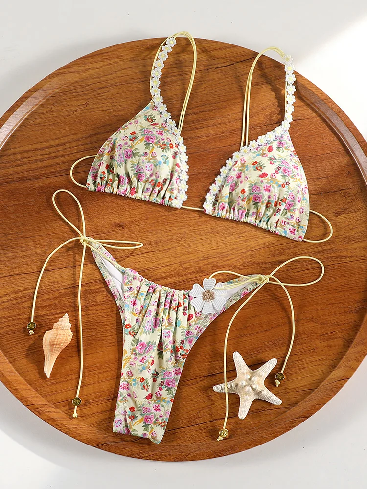 Goddess Vibes Floral Triangle Bikini Set with Wire-Free Support