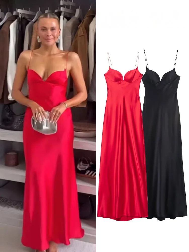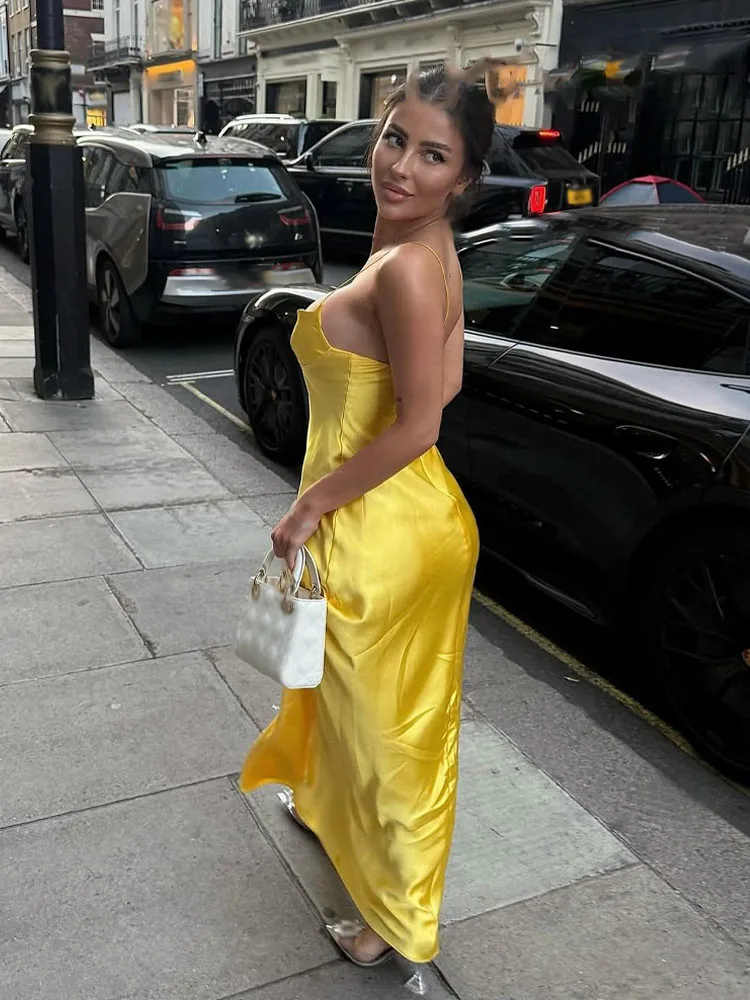 This exquisite dress isn’t just about looks; it’s about making a statement. The satin texture drapes beautifully, providing a luxurious feel against your skin. The sleeveless design keeps you cool during warm summer nights, while the mid-calf length offers a chic yet modest appeal. Whether you’re sipping cocktails at a rooftop bar, dancing the night away, or mingling at a gala, this dress ensures you stay comfortable and stylish.