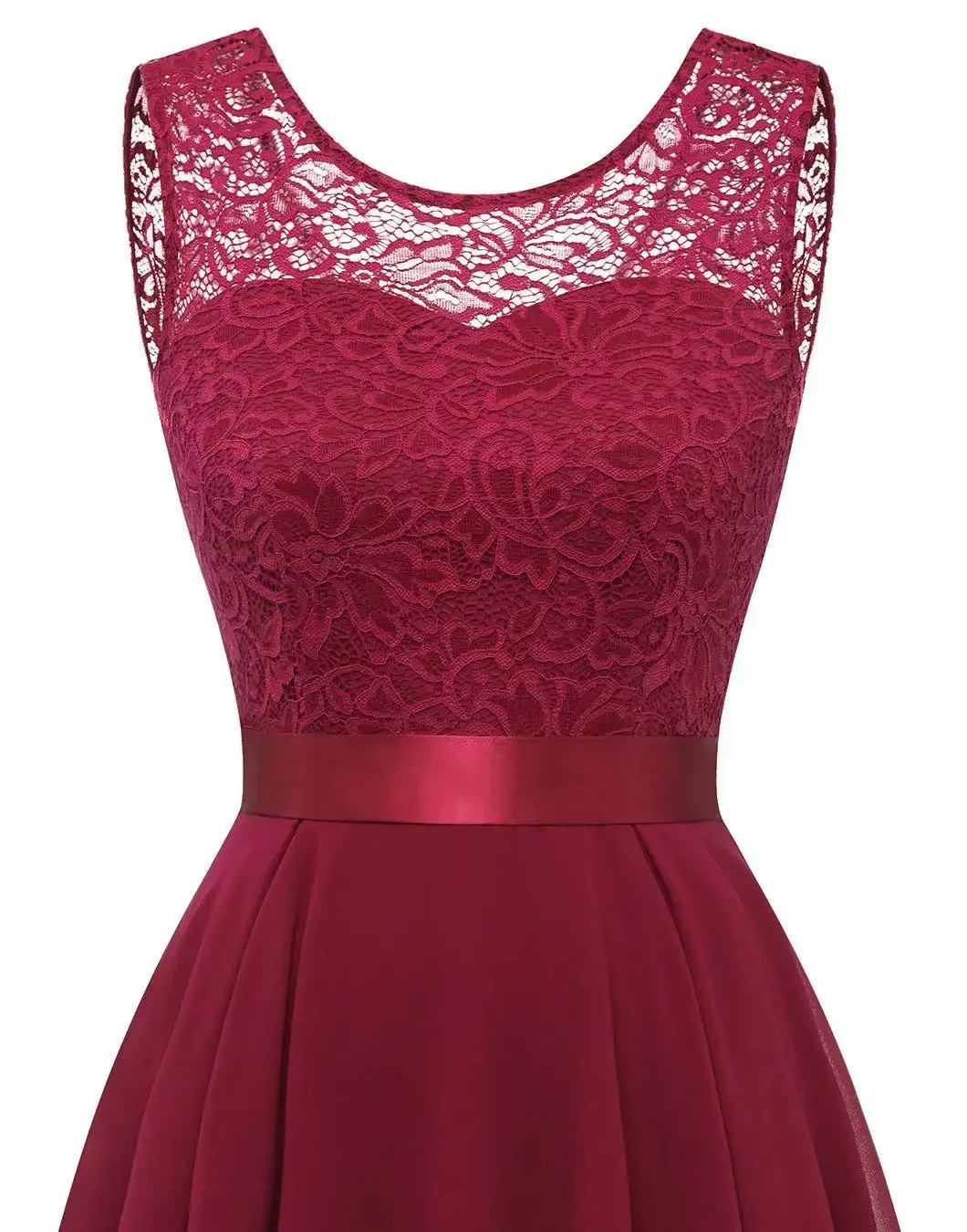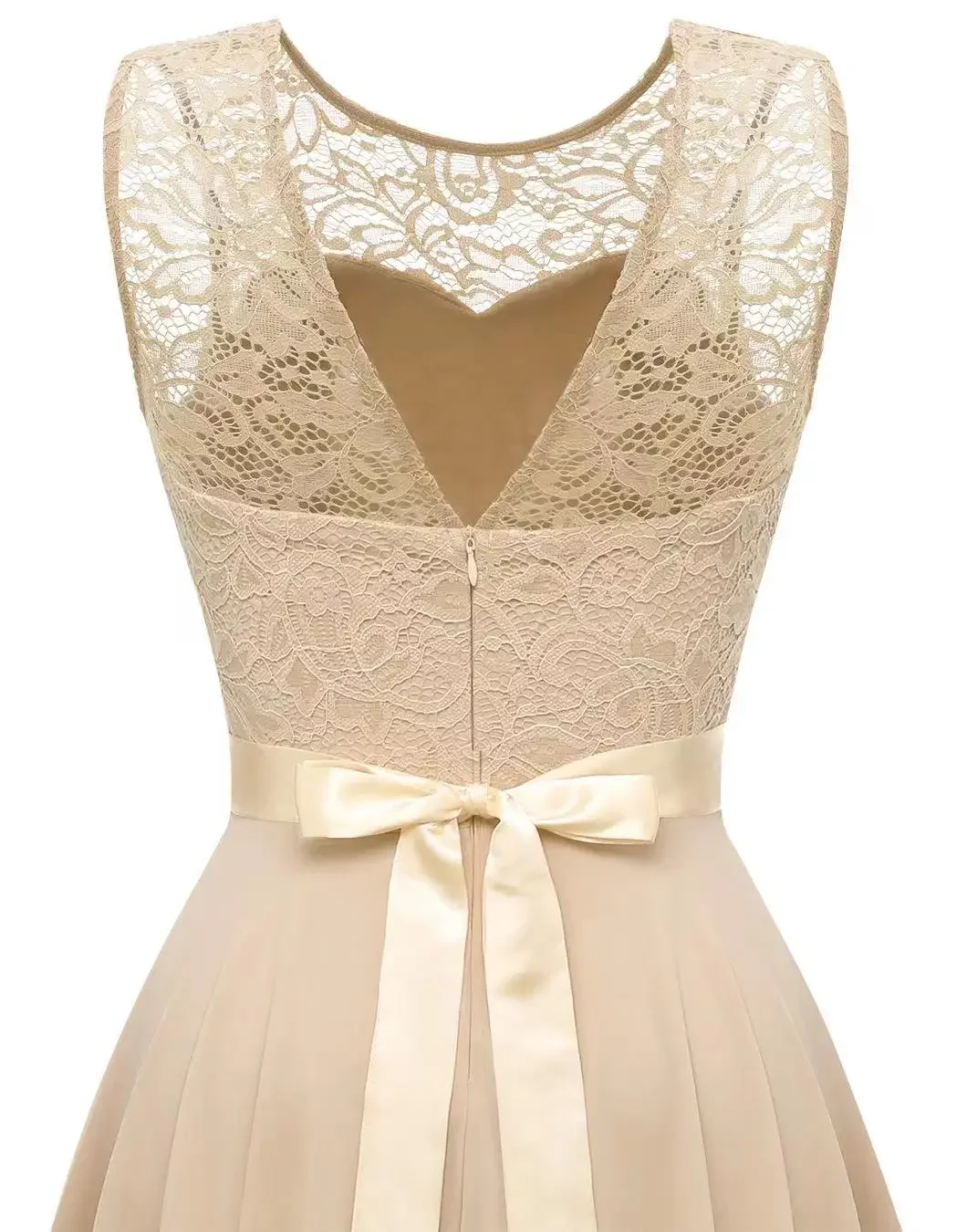 Embrace a refined yet contemporary aesthetic with the High-Low Chiffon Lace Dress by Talenza, designed to elevate your formal wardrobe for spring and summer occasions. This ankle-length dress showcases a graceful A-line silhouette that gently skims the body, enhanced by delicate lace patchwork and a flattering V-neckline. The sleeveless design and slight stretch polyester fabric ensure comfort and breathability, making it an excellent choice for warmer weather events.