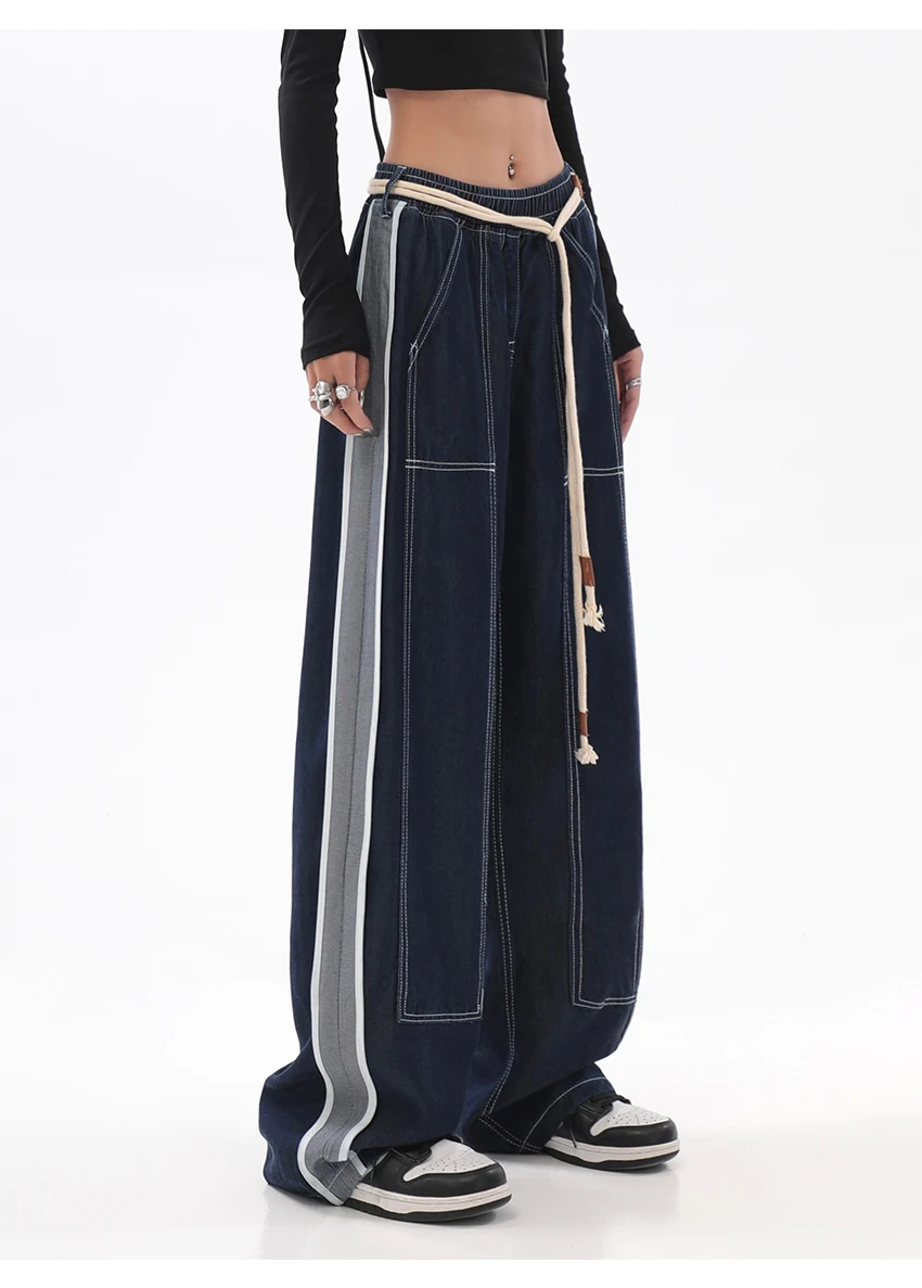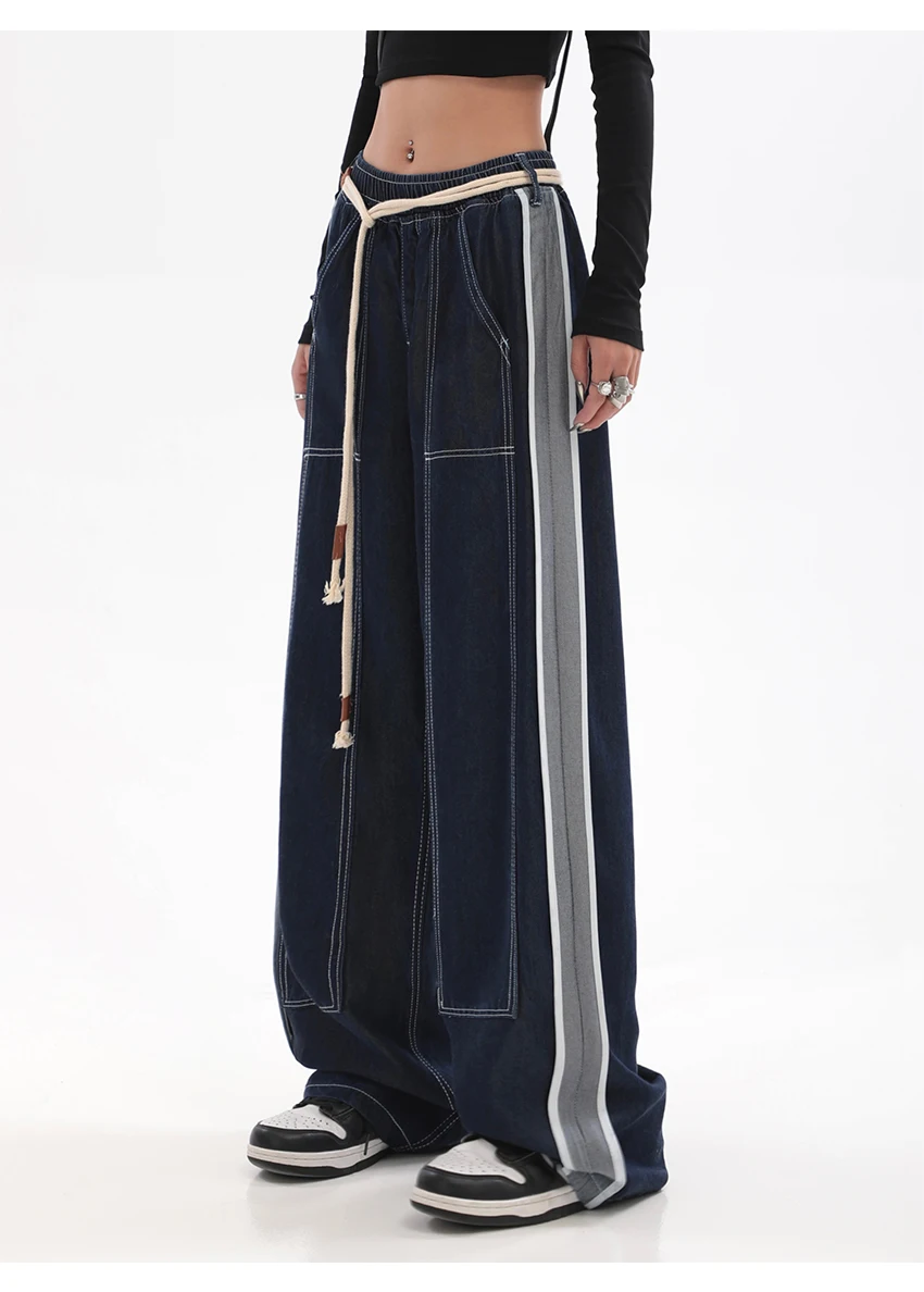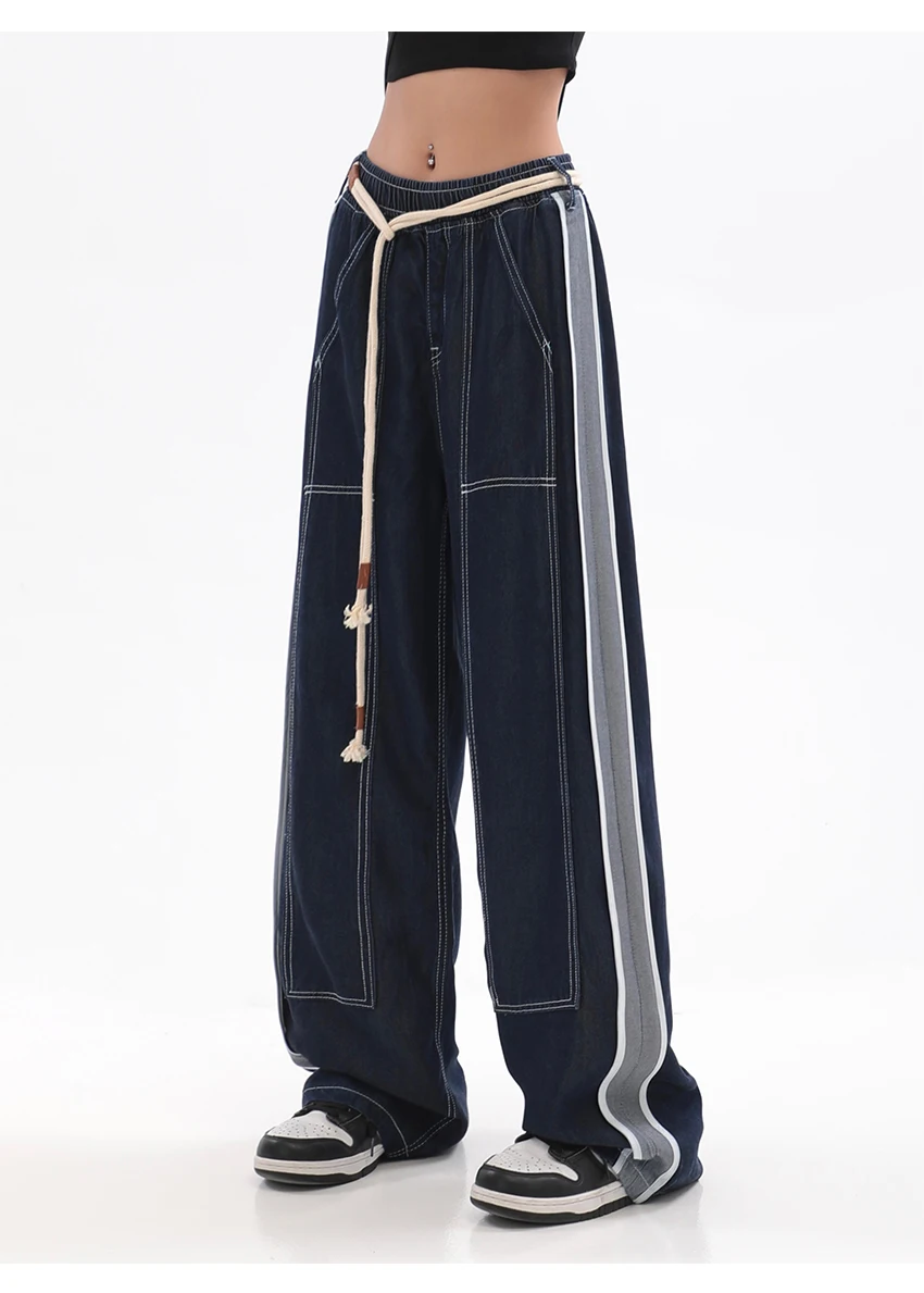These jeans feature a loose fit that allows for ease of movement, making them suitable for various body types. Available in sizes S to XXXL, they cater to a wide range of figures. The elastic waist ensures a comfortable fit without compromising style.