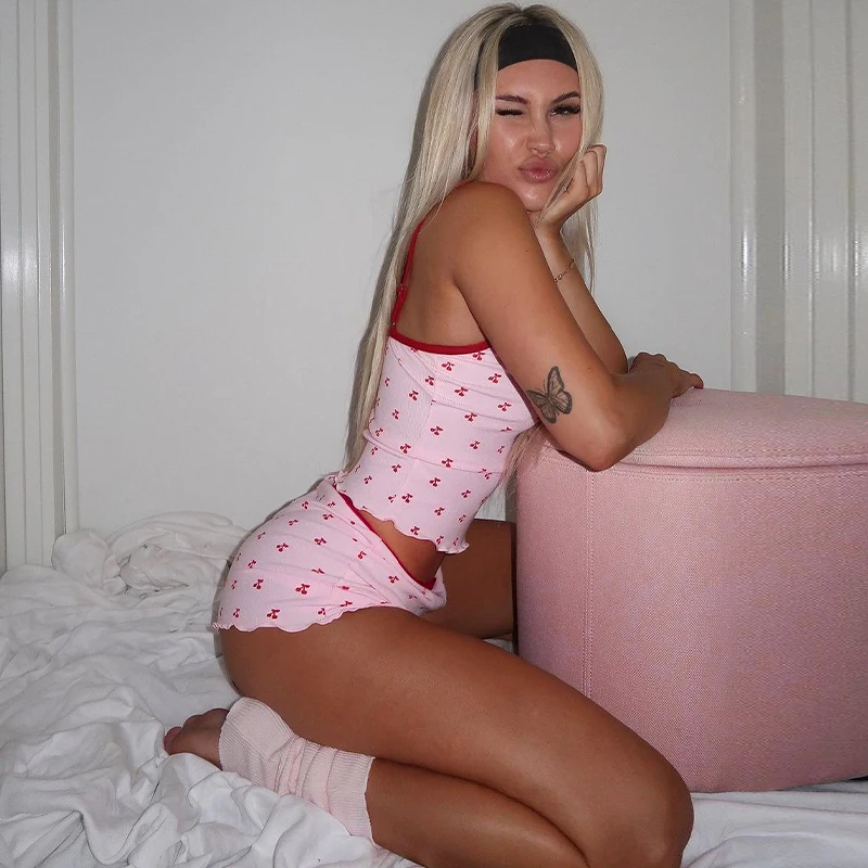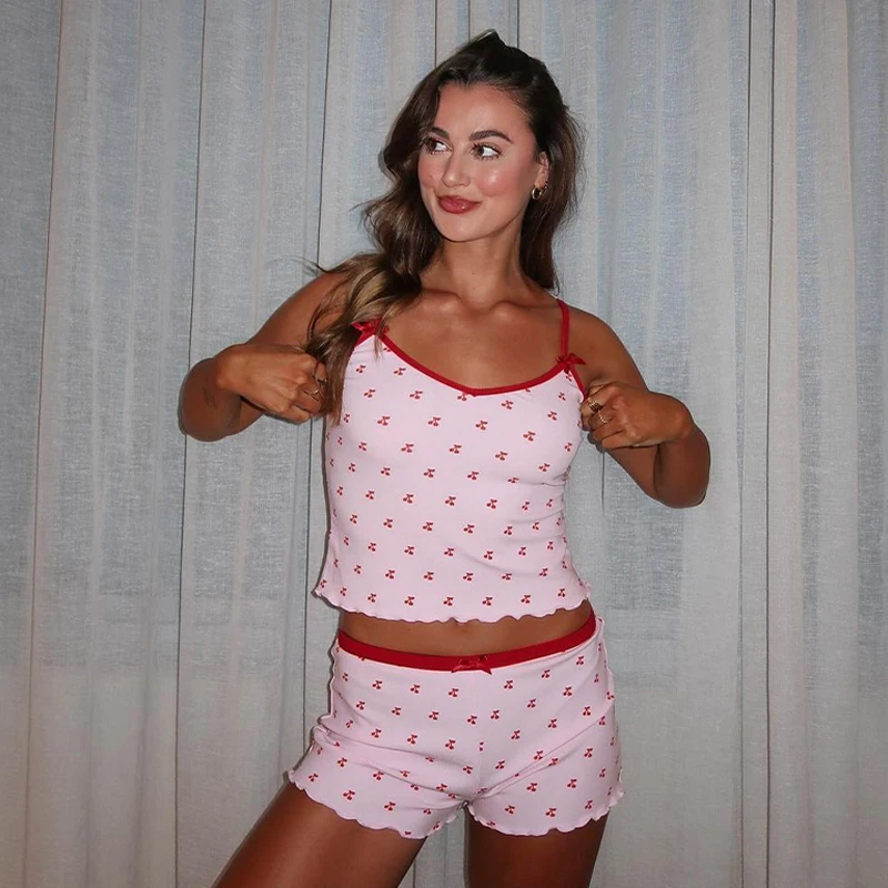 21 reviews for Cherry Print Bow Cami Top & Shorts Set Summer Festival Outfit