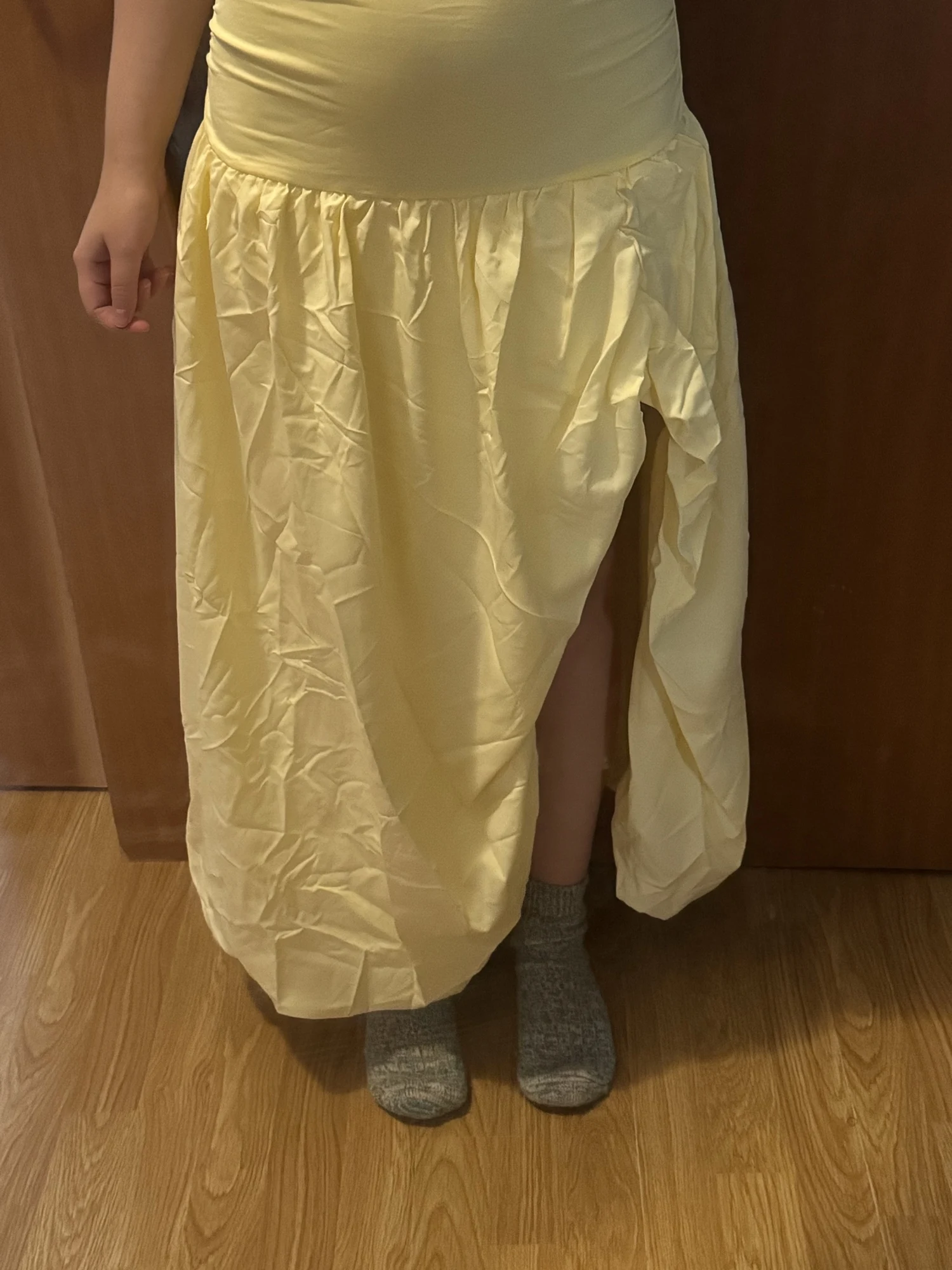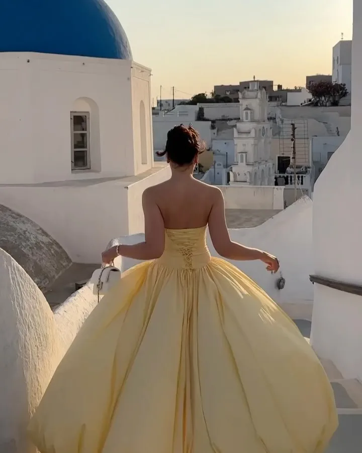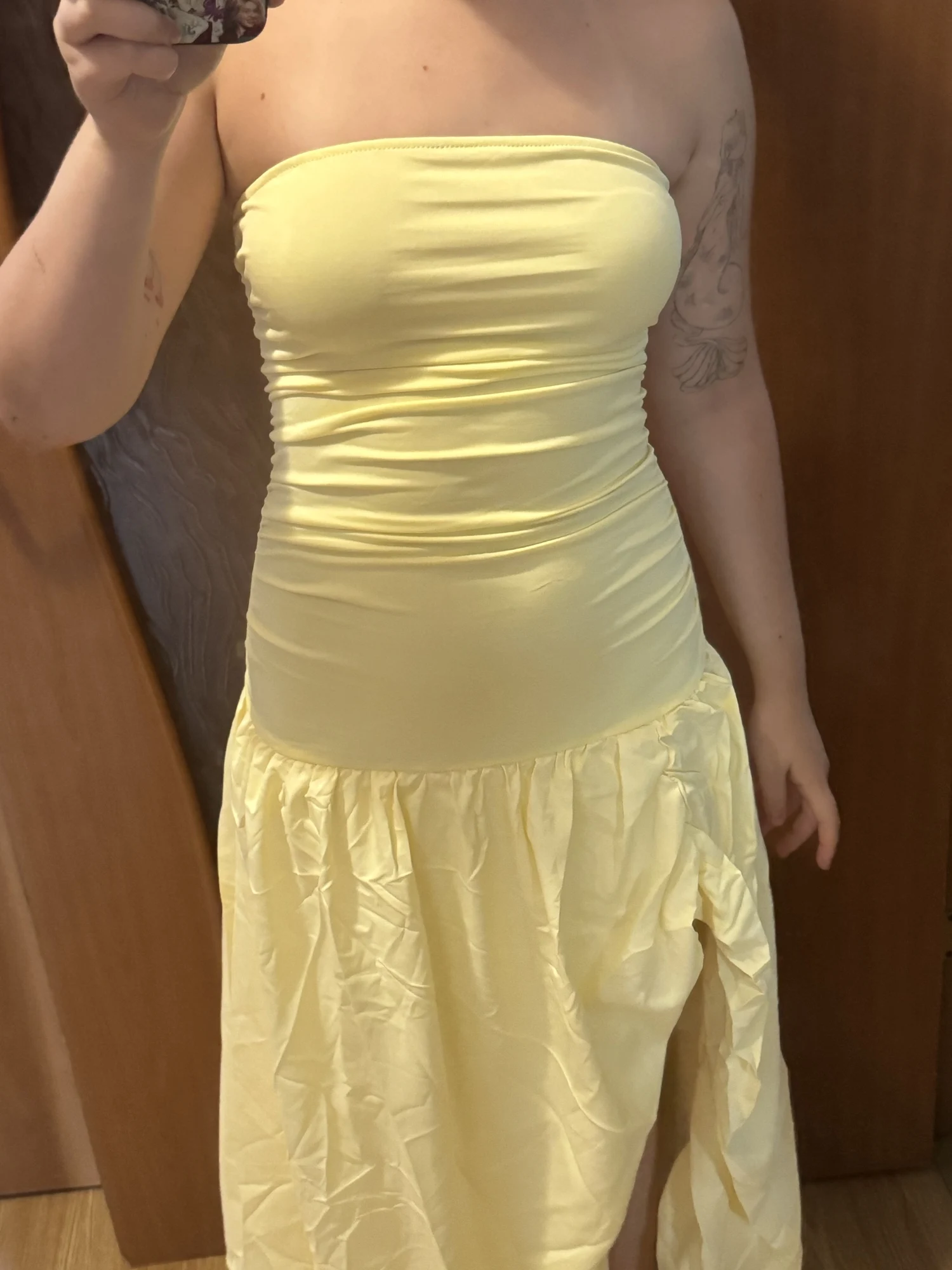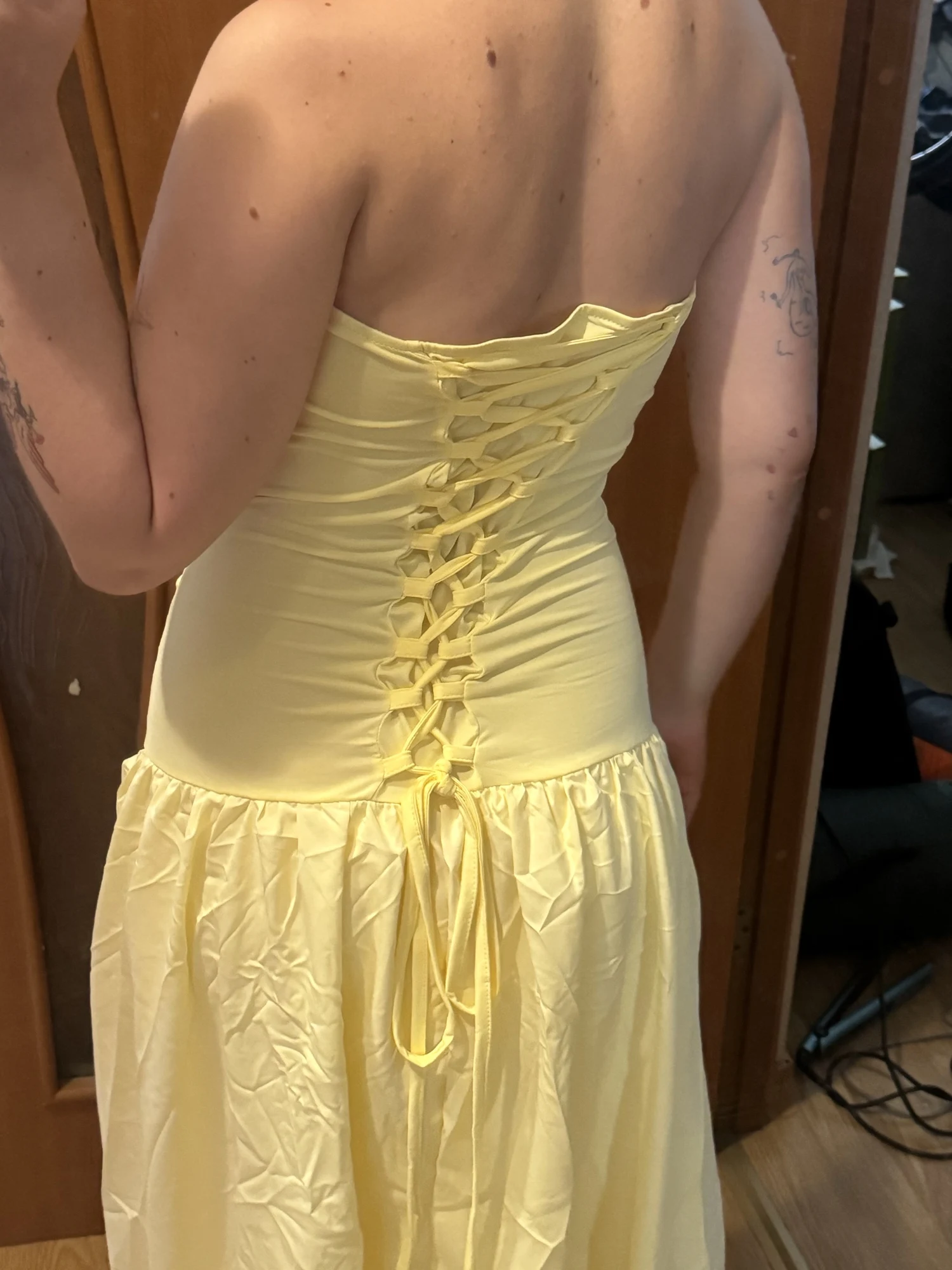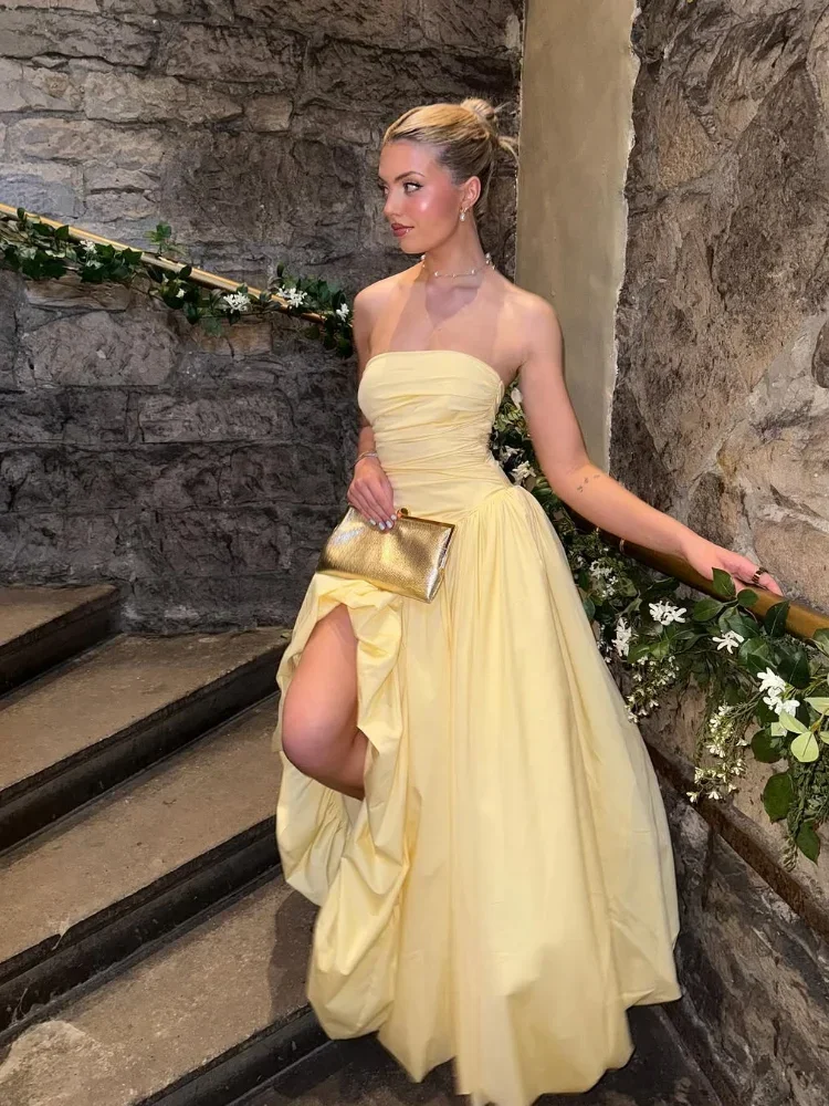 54 reviews for Elegant Yellow Strapless Pleated Dress for Special Occasions