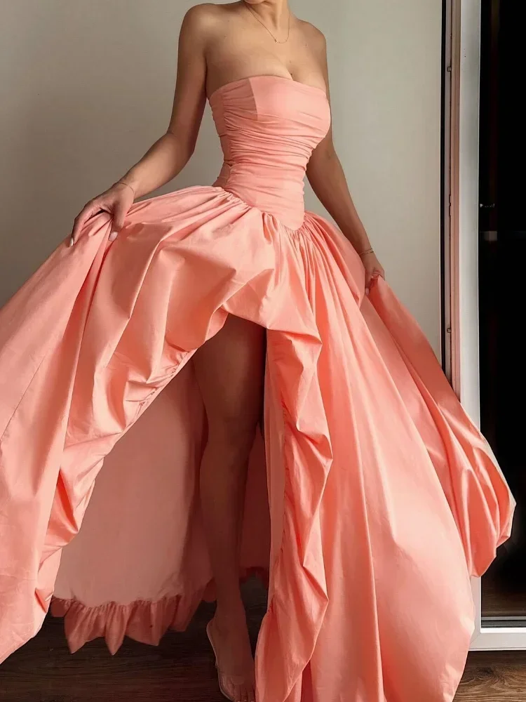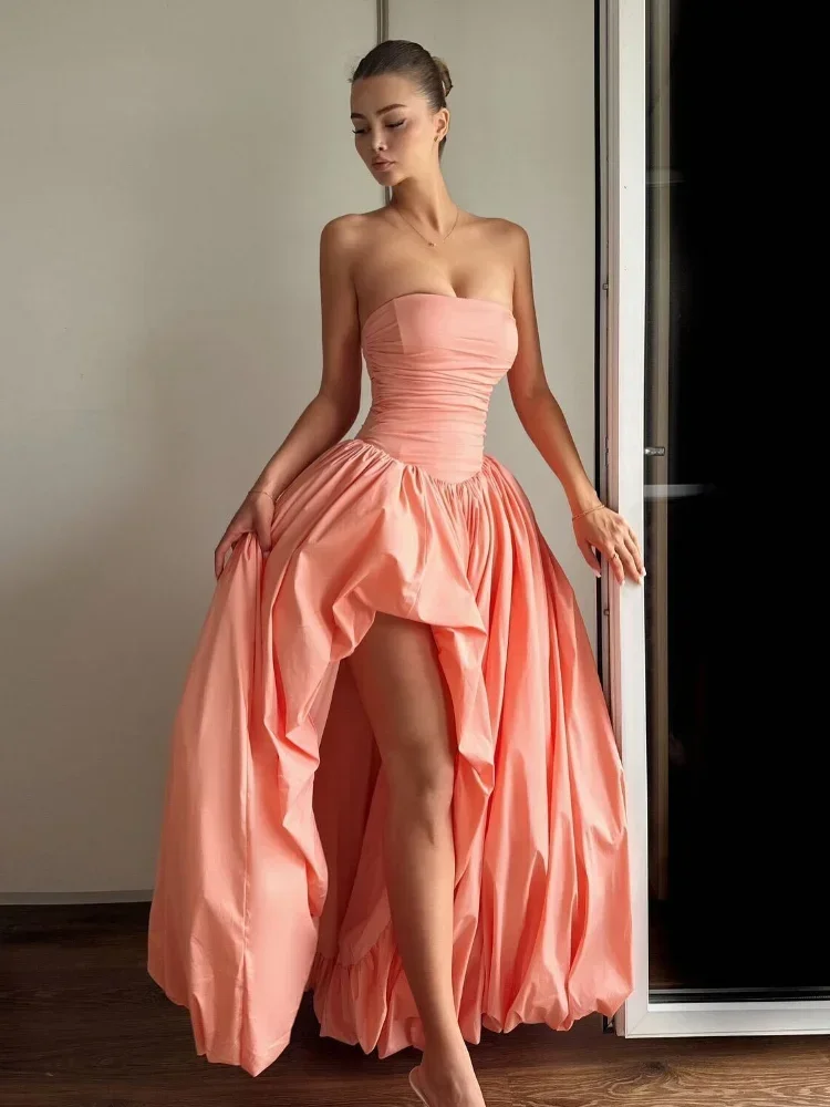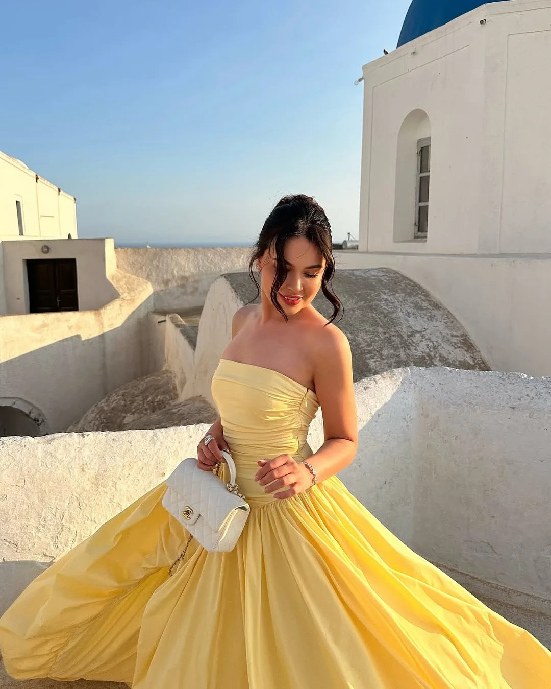 Step into a world of sophistication with our Elegant Yellow Strapless Pleated Dress, designed to make you the center of attention at any special occasion. This stunning piece embodies a luxurious silhouette, perfect for celebrating life’s most cherished moments, from summer weddings to glamorous evening gatherings. With its vibrant hue and graceful design, this dress is not just a piece of clothing; it is an expression of your unique style and confidence.