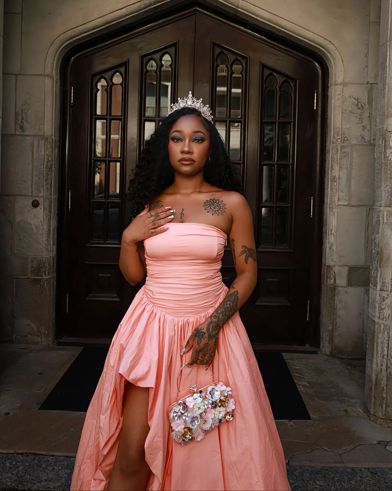 Constructed from premium polyester, this dress is both breathable and easy to care for. Simply machine wash on a gentle cycle and hang to dry, allowing you to focus on creating memories rather than laundry. With no high-concern chemicals in its fabric, this dress is a safe choice for all skin types. Embrace your inner elegance and make a statement with this exquisite dress that is sure to become a cherished part of your wardrobe.