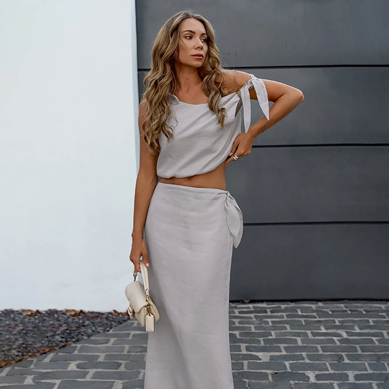 Gray A-Line Maxi Skirt Set – Professional Two Piece Outfit