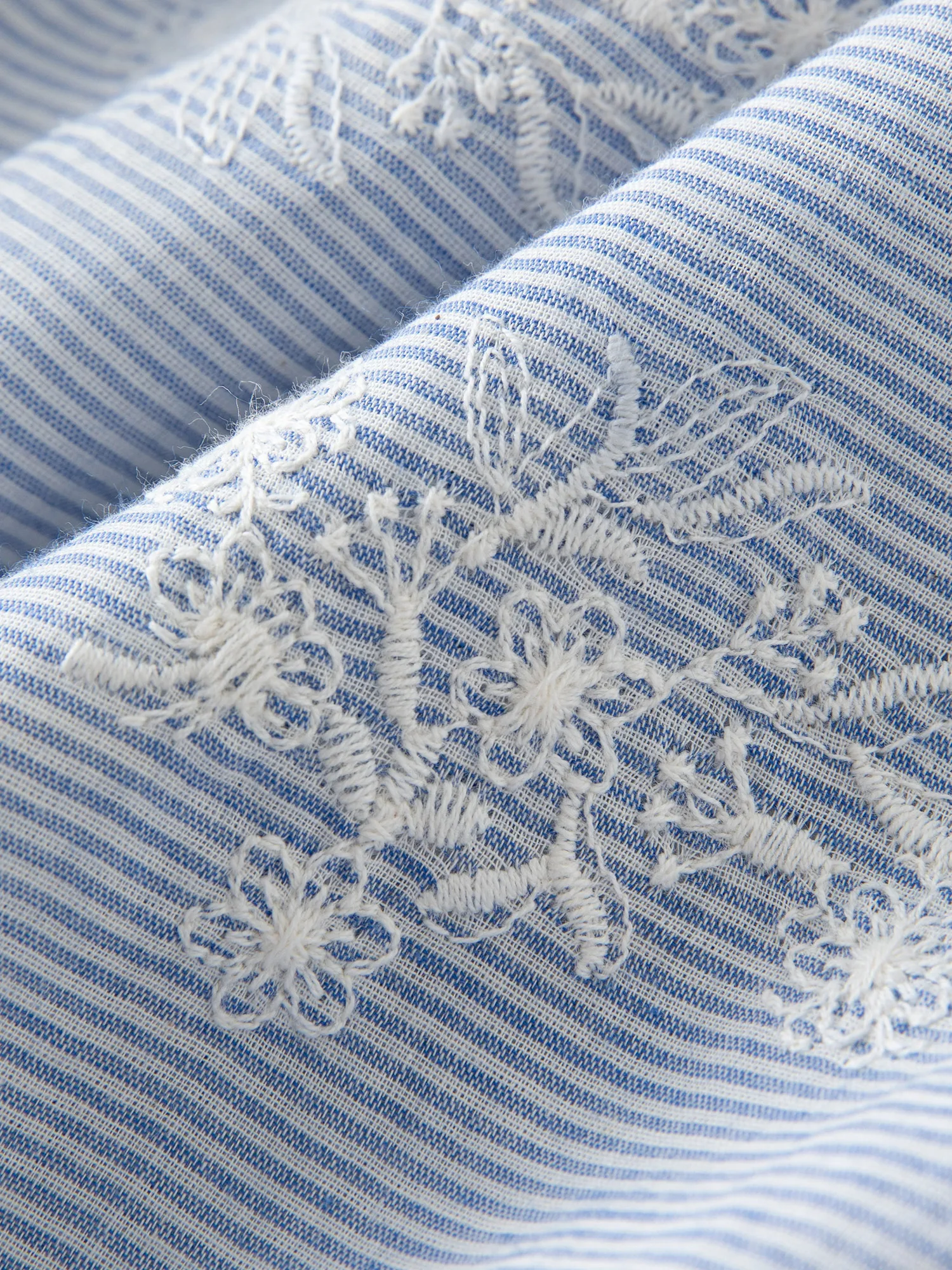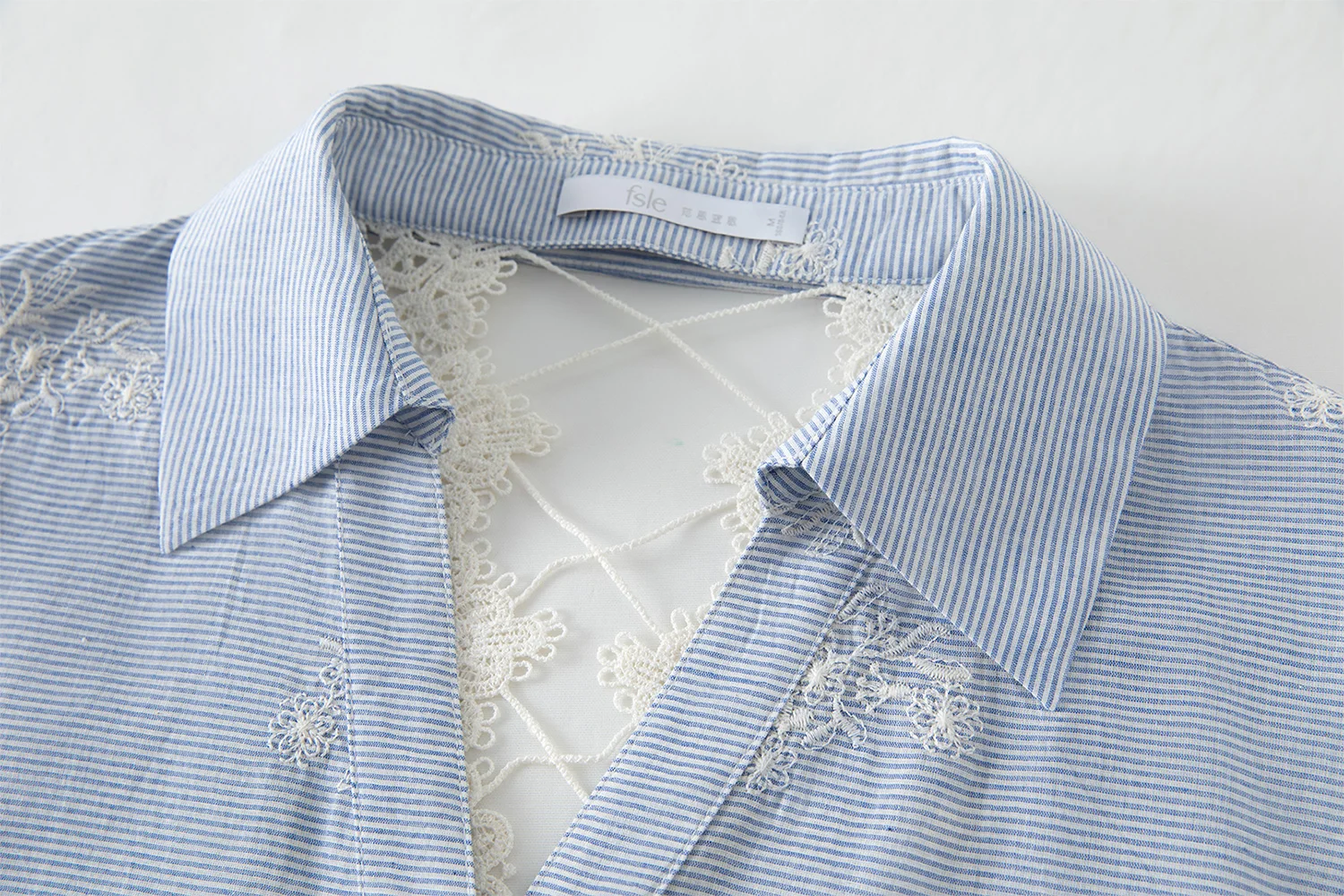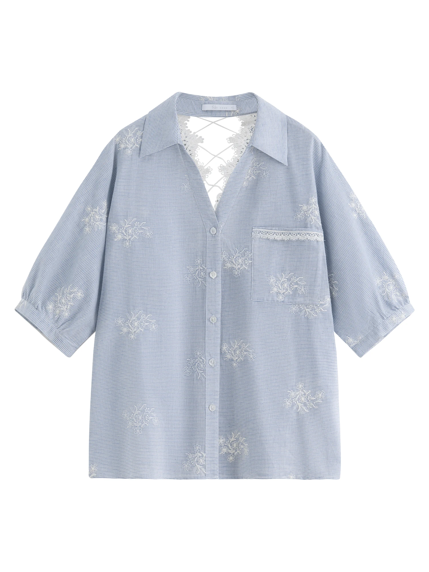 Isla Striped Shirt with Unique Hollow Back Embroidery