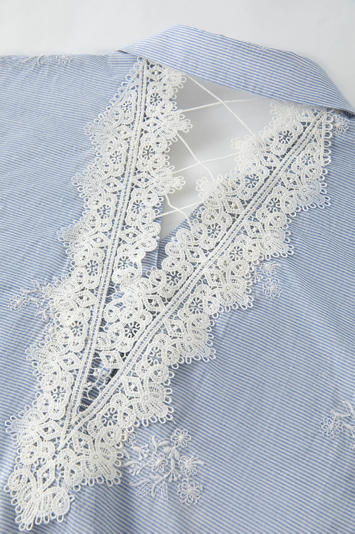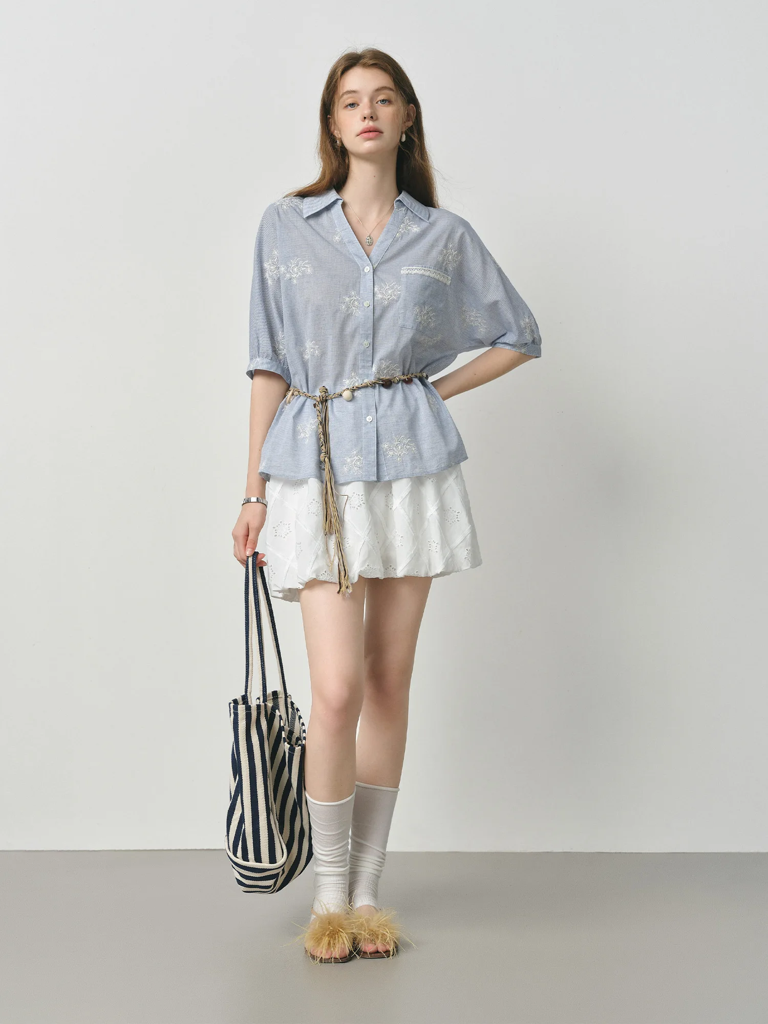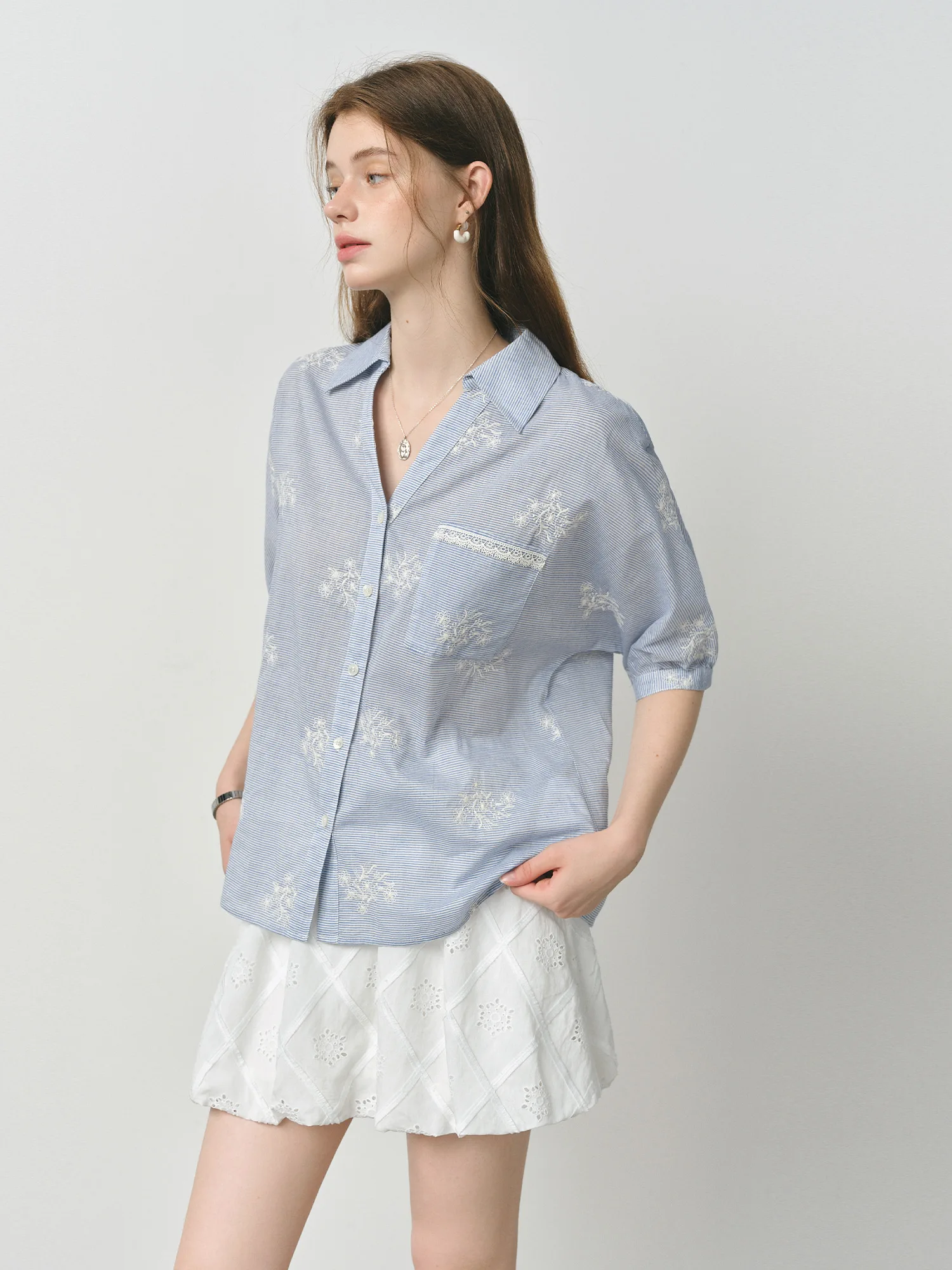 Isla Striped Shirt with Unique Hollow Back Embroidery