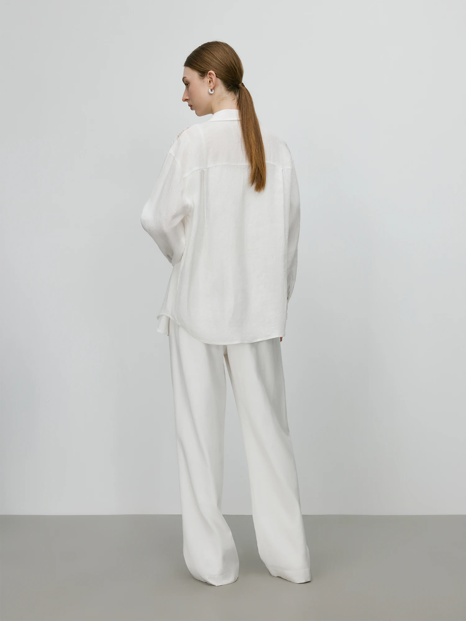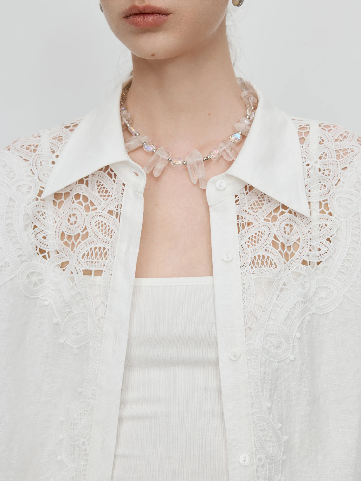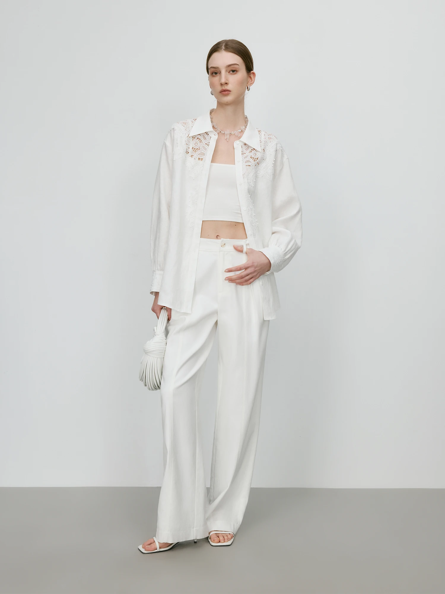 Ivory Linen Lace Long-Sleeved Shirt with Embroidered Detailing