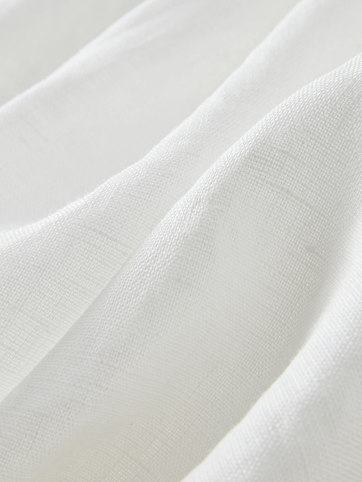Fabric & Care: Made from pure linen, the fabric is breathable and soft to the touch, adapting well to warmer temperatures. To maintain the integrity of the embroidered detailing and fabric texture, gentle hand washing is advised, avoiding dry cleaning.