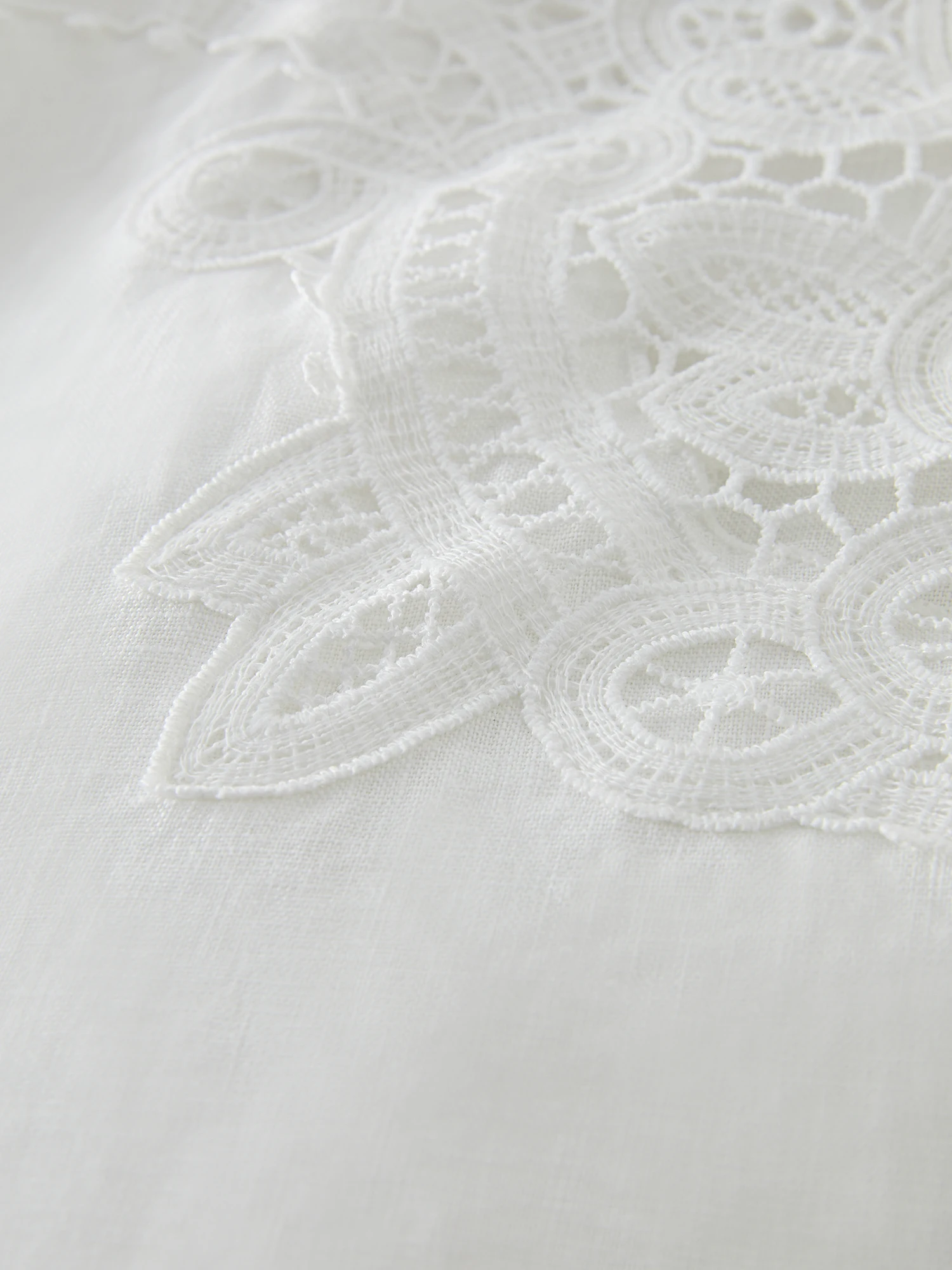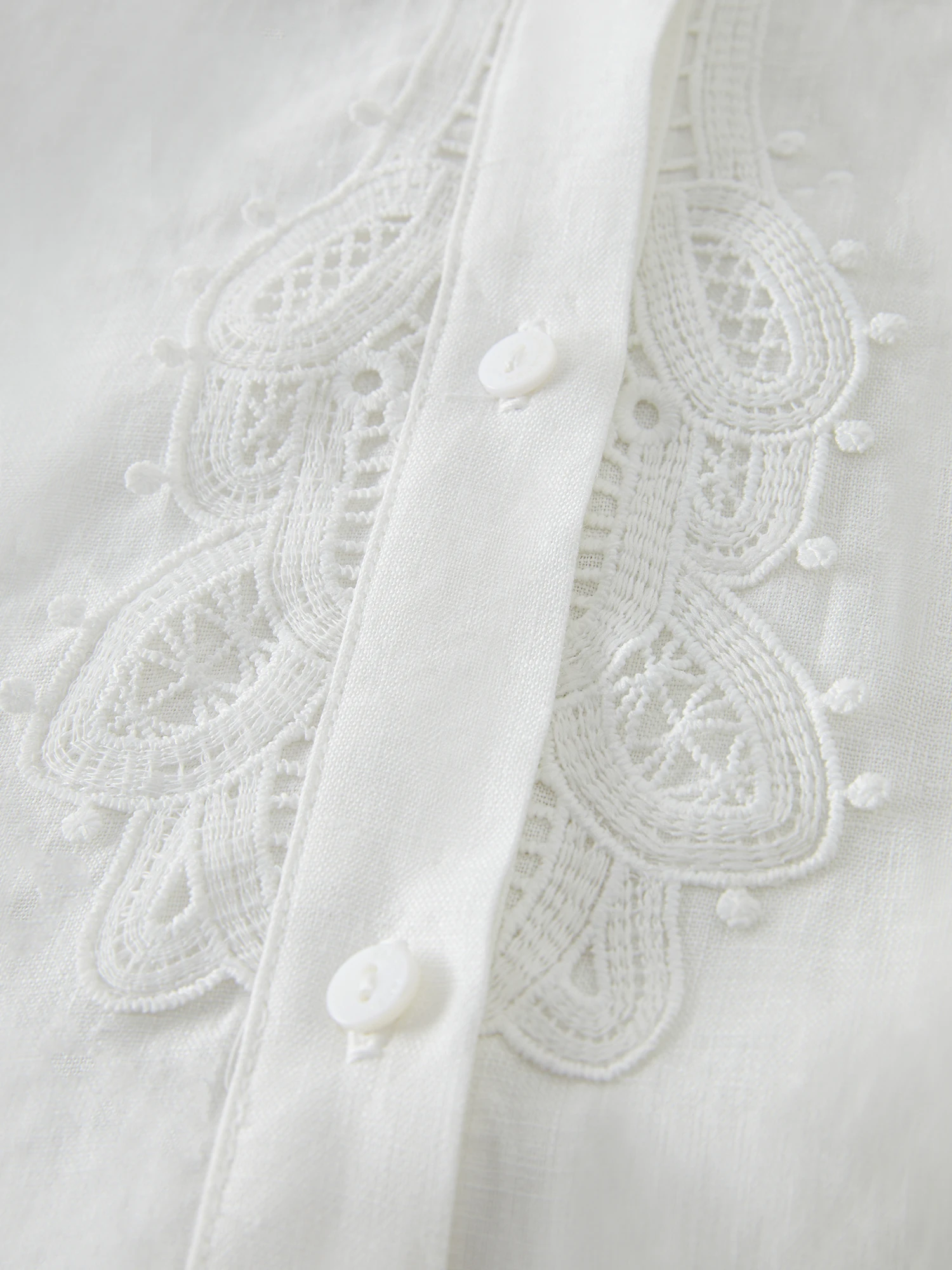 7 reviews for Ivory Linen Lace Long-Sleeved Shirt with Embroidered Detailing