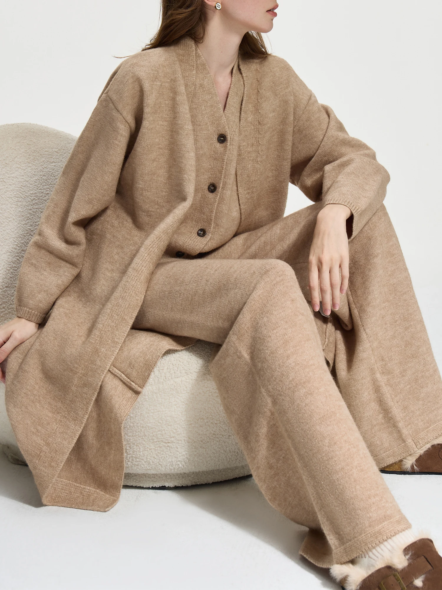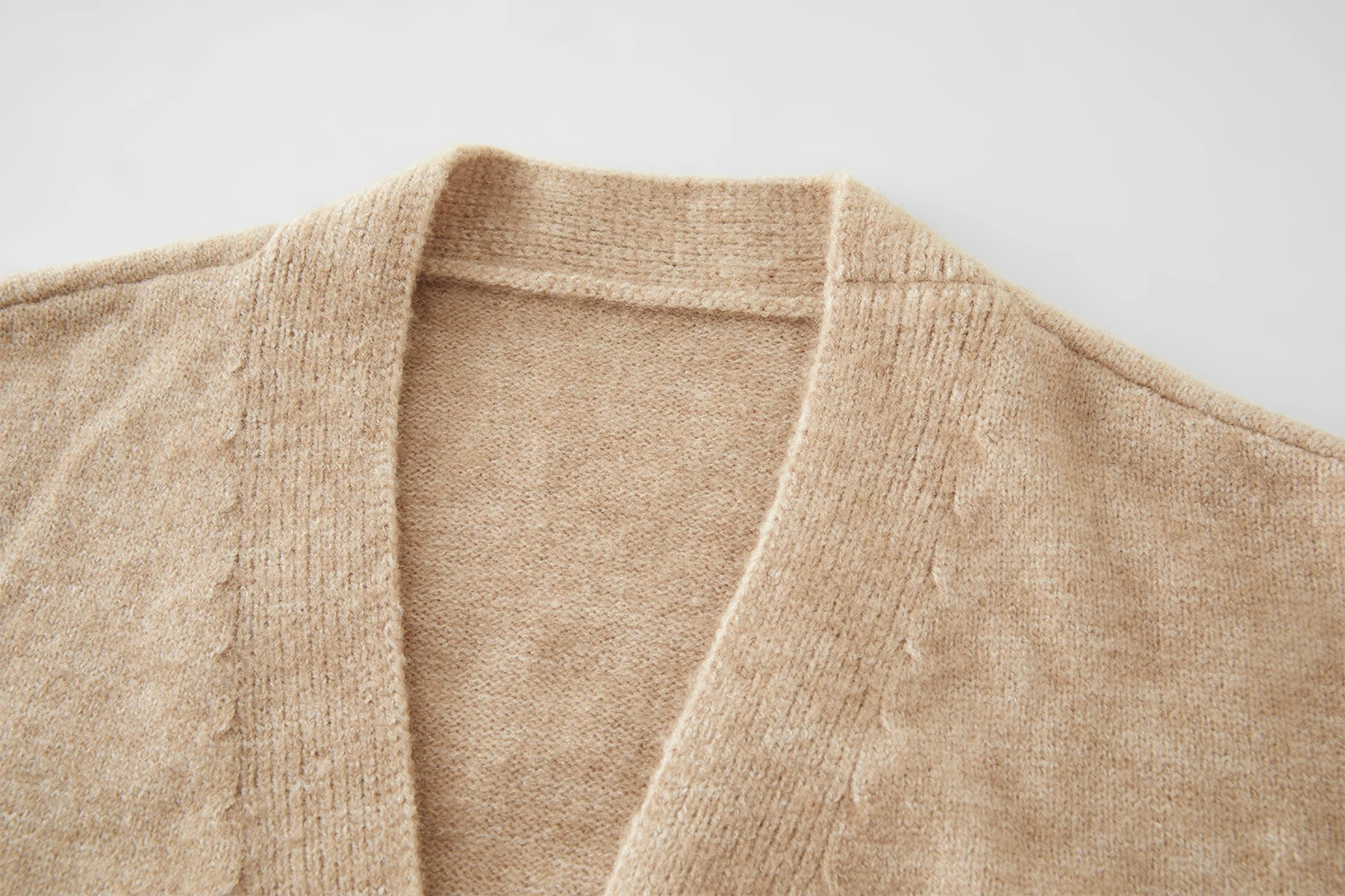 Elevate your autumn and winter wardrobe with this khaki knitted cardigan vest pants set. Designed for casual elegance, it seamlessly blends comfort and style, making it suitable for both relaxed weekends and laid-back evenings at home.