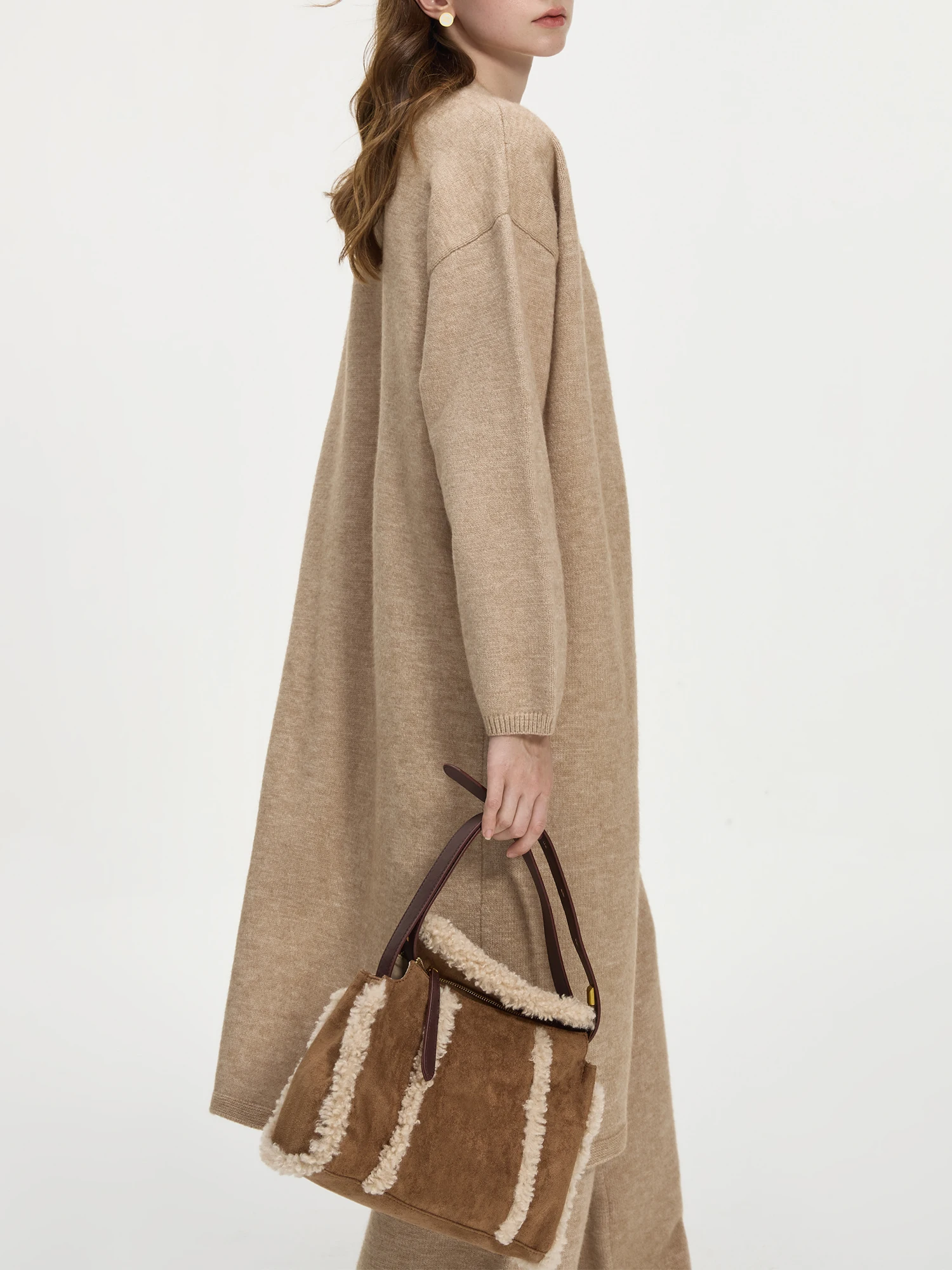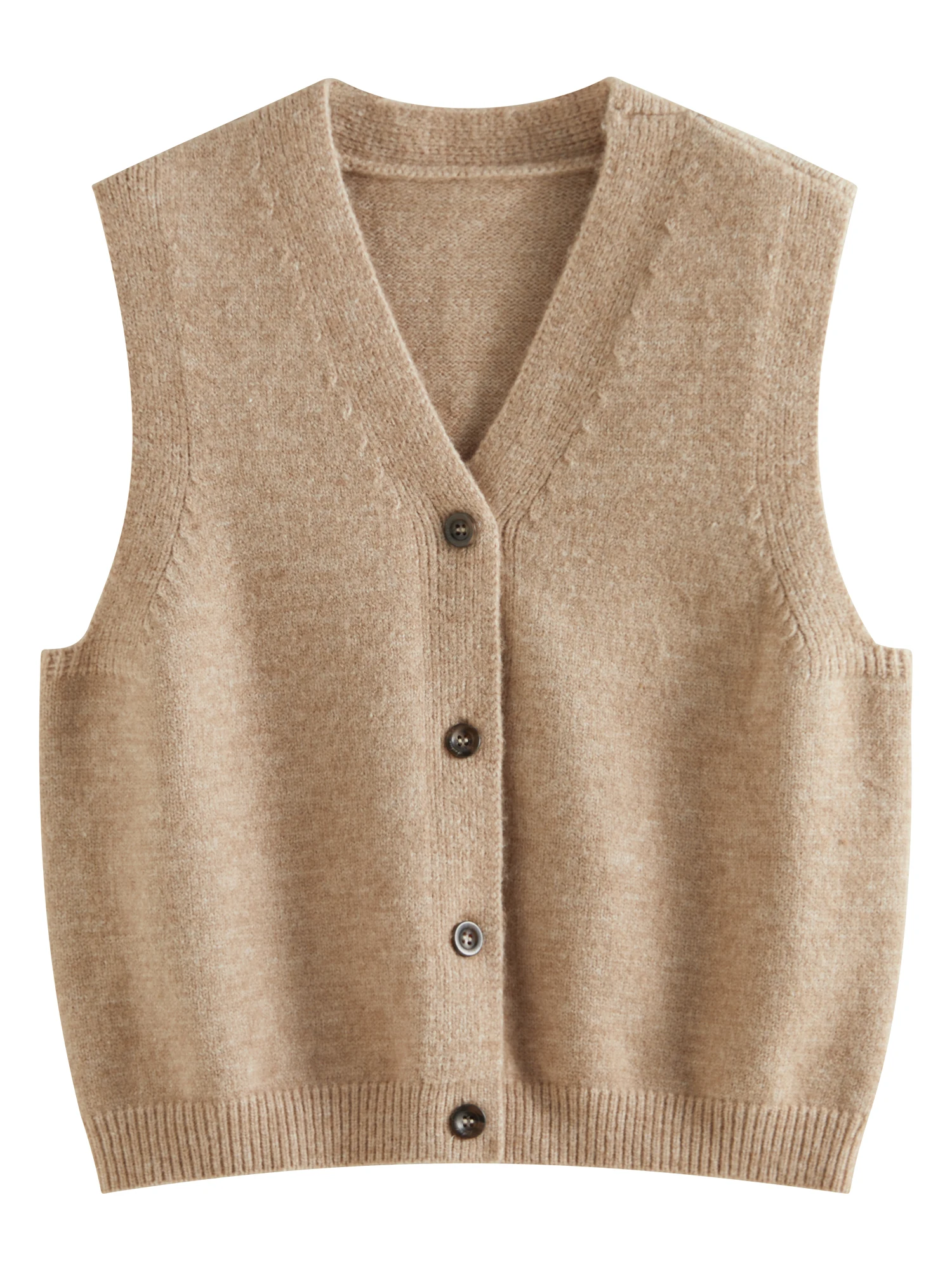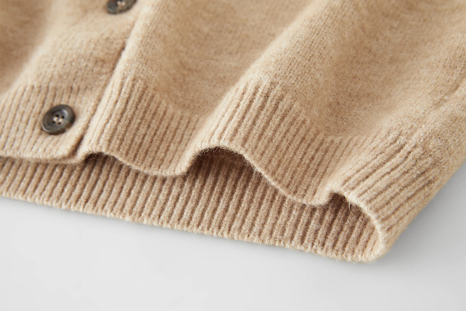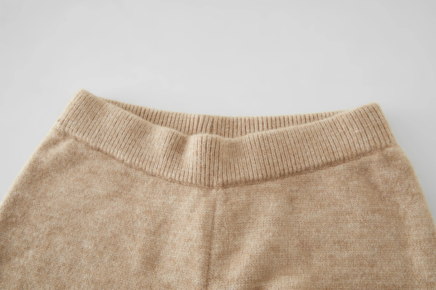 This khaki knitted cardigan vest pants set offers a relaxed fit, ideal for layering during the cooler months. Perfect for casual outings, it pairs beautifully with ankle boots or sneakers.