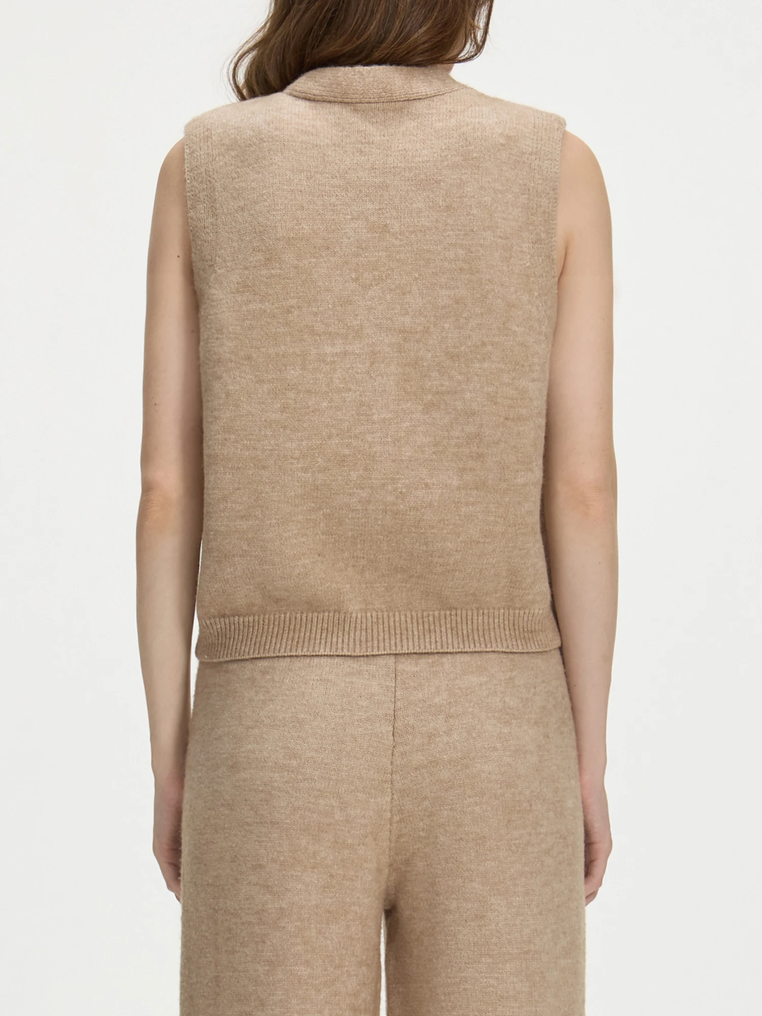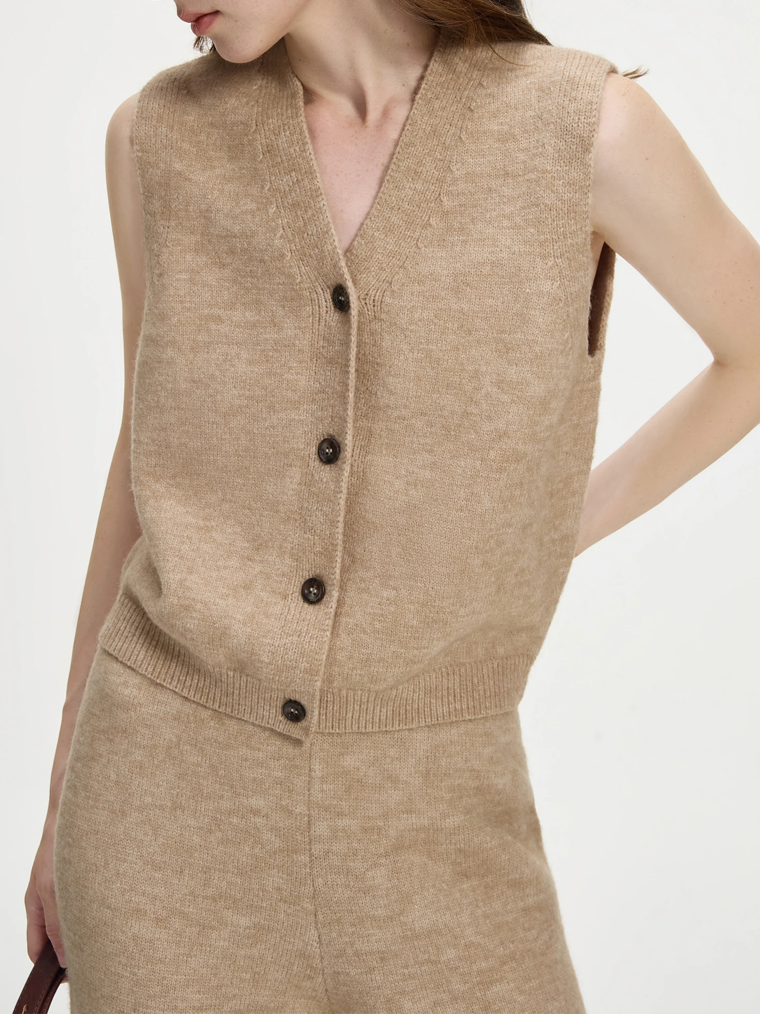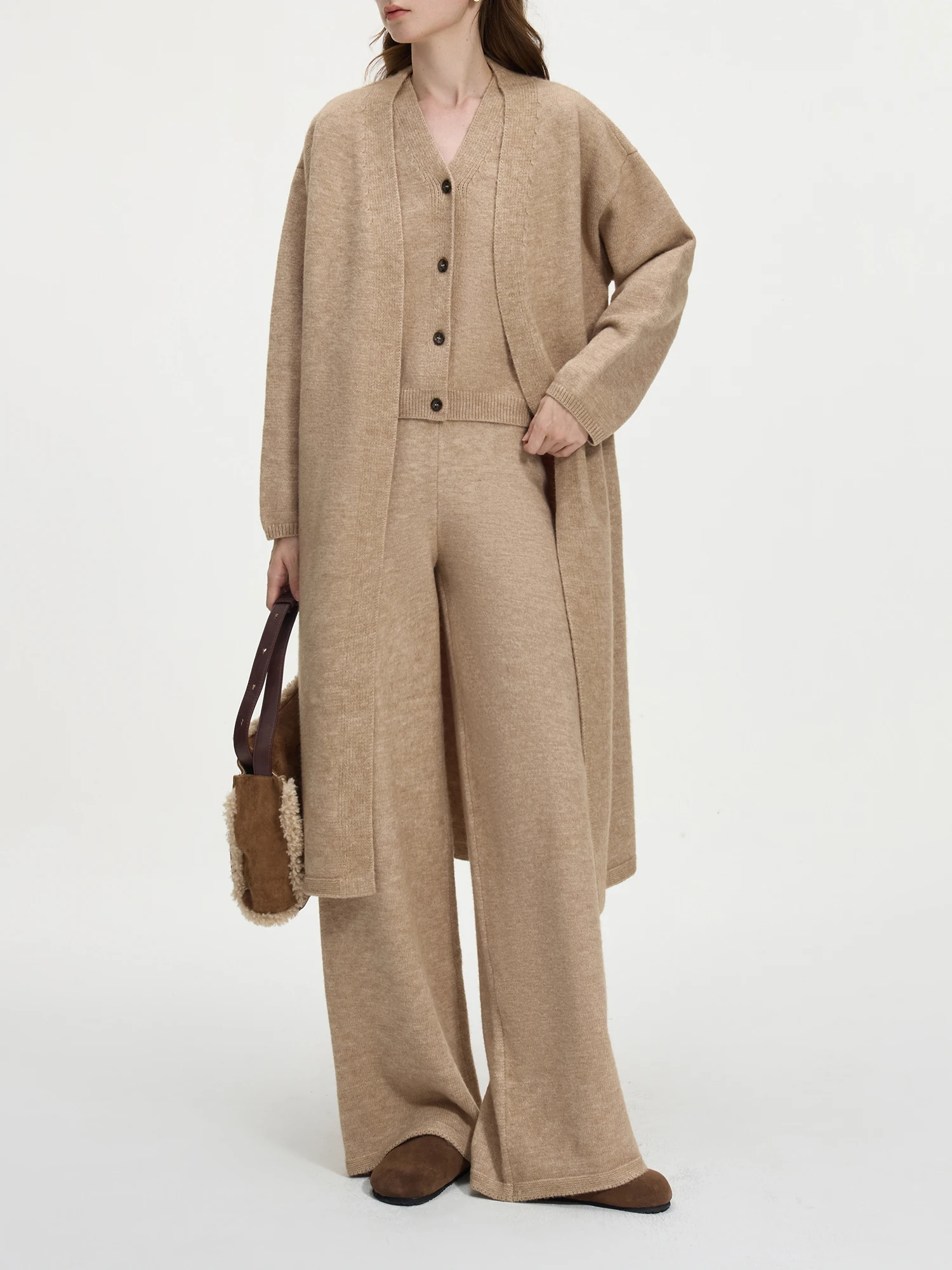 Khaki Knitted Cardigan Vest Pants Set for Women