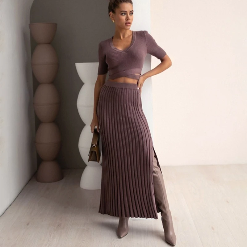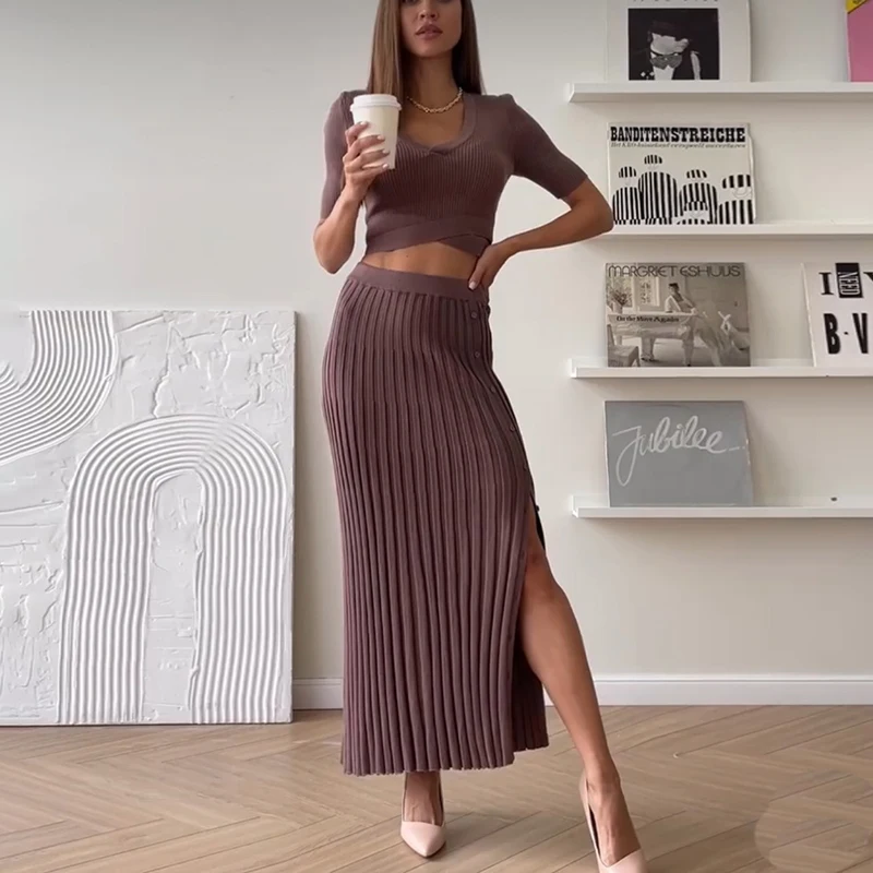 Indulge in Elegance with the Knitting Slit Skirt Set