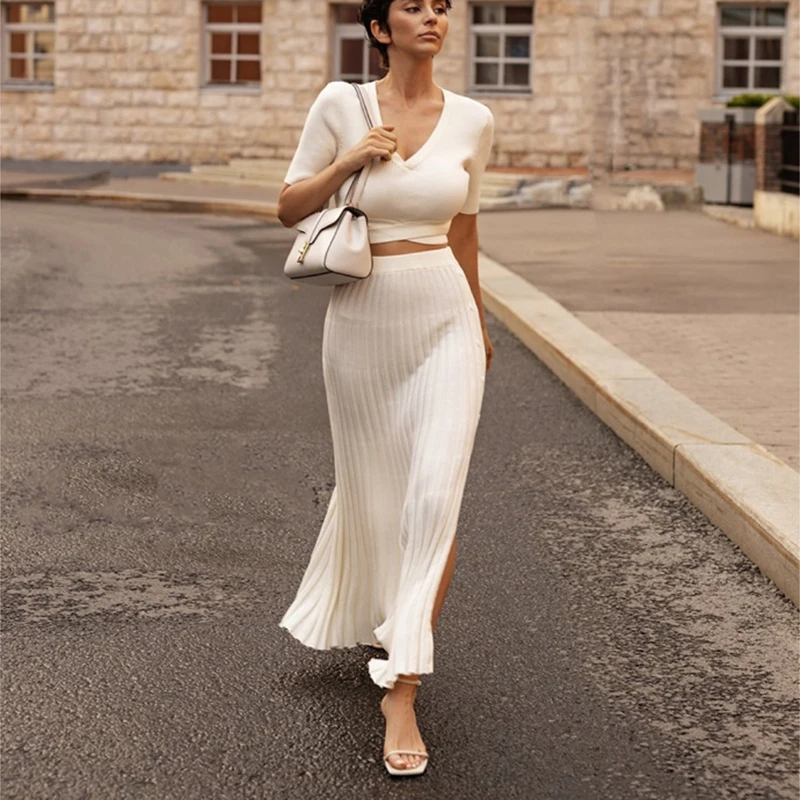 Step into sophistication with the Knitting Slit Skirt Set for women, a perfect ensemble that combines comfort with refined style. Ideal for the modern woman, this exquisite two-piece set features a chic V-neck short sleeve cardigan and a stunning ankle-length skirt that effortlessly transforms your look from day to night. Whether you’re attending a party or enjoying a romantic dinner on Valentine’s Day, this set ensures you radiate confidence and grace.
