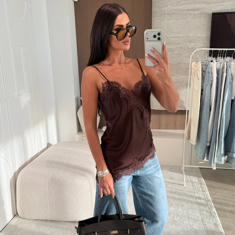 Q: For what occasions is this camisole suitable?A: This piece suits night outings and summer occasions, pairing well with tailored trousers or skirts for a refined, minimalist look.